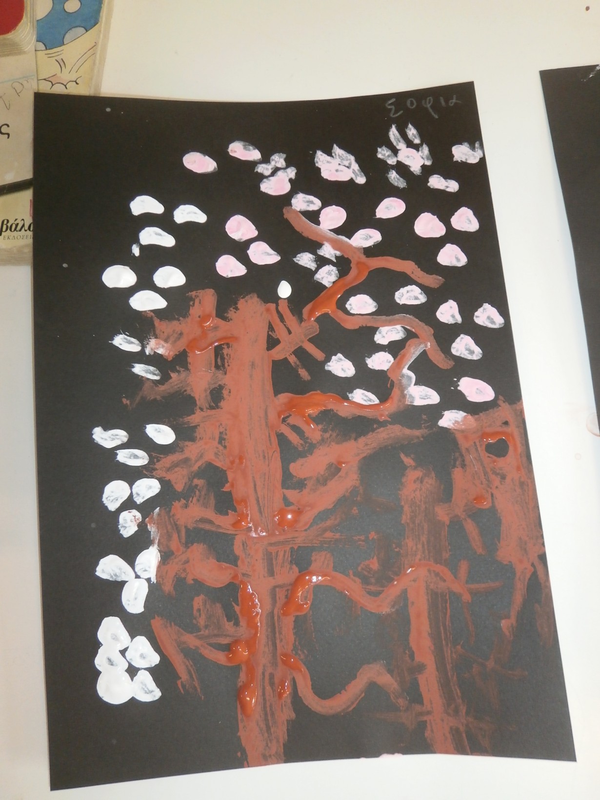 τα παιδιά ζωγράφισαν την Φιλίδα στον κορμό της Αμυγδαλιάς.