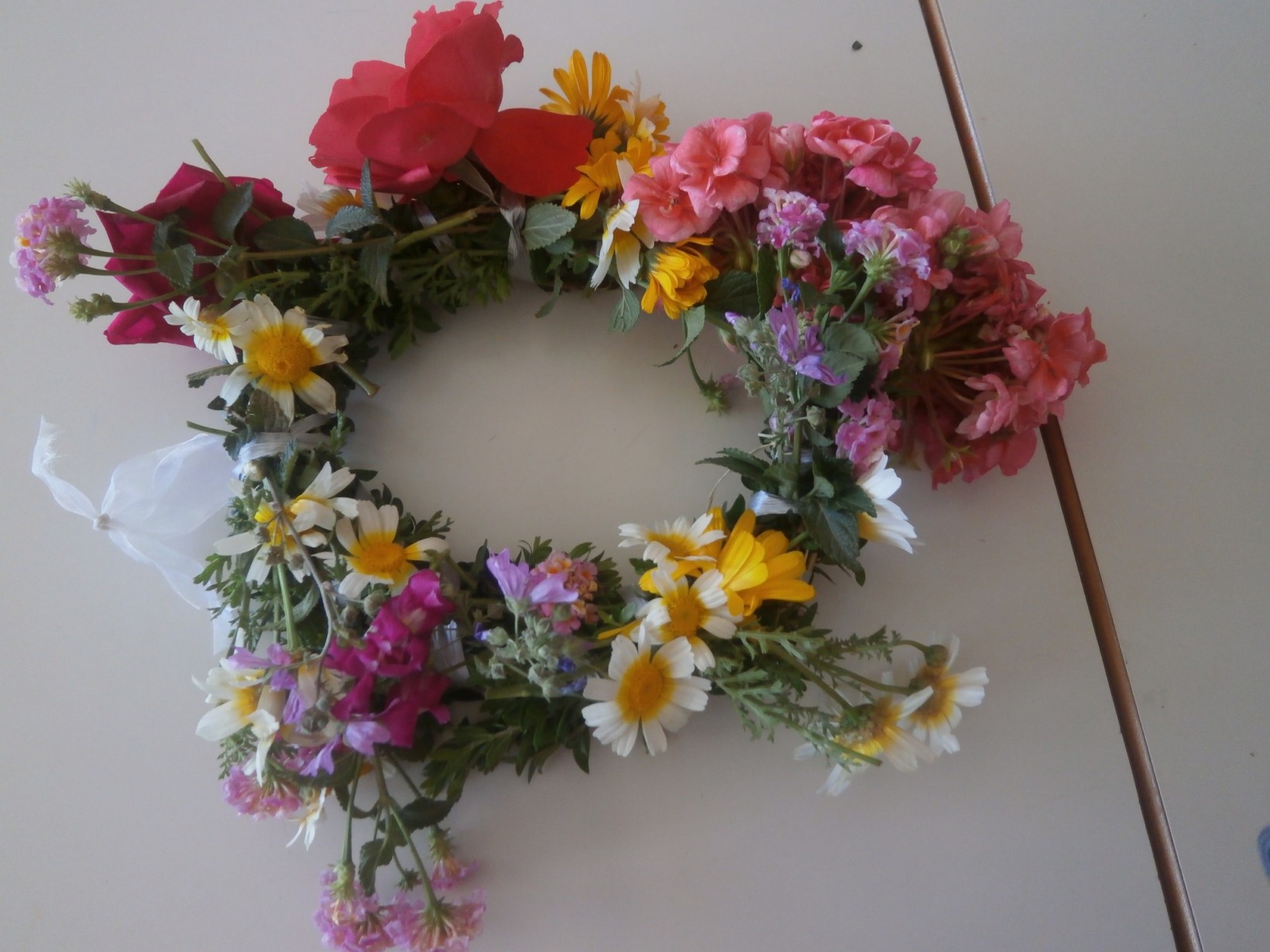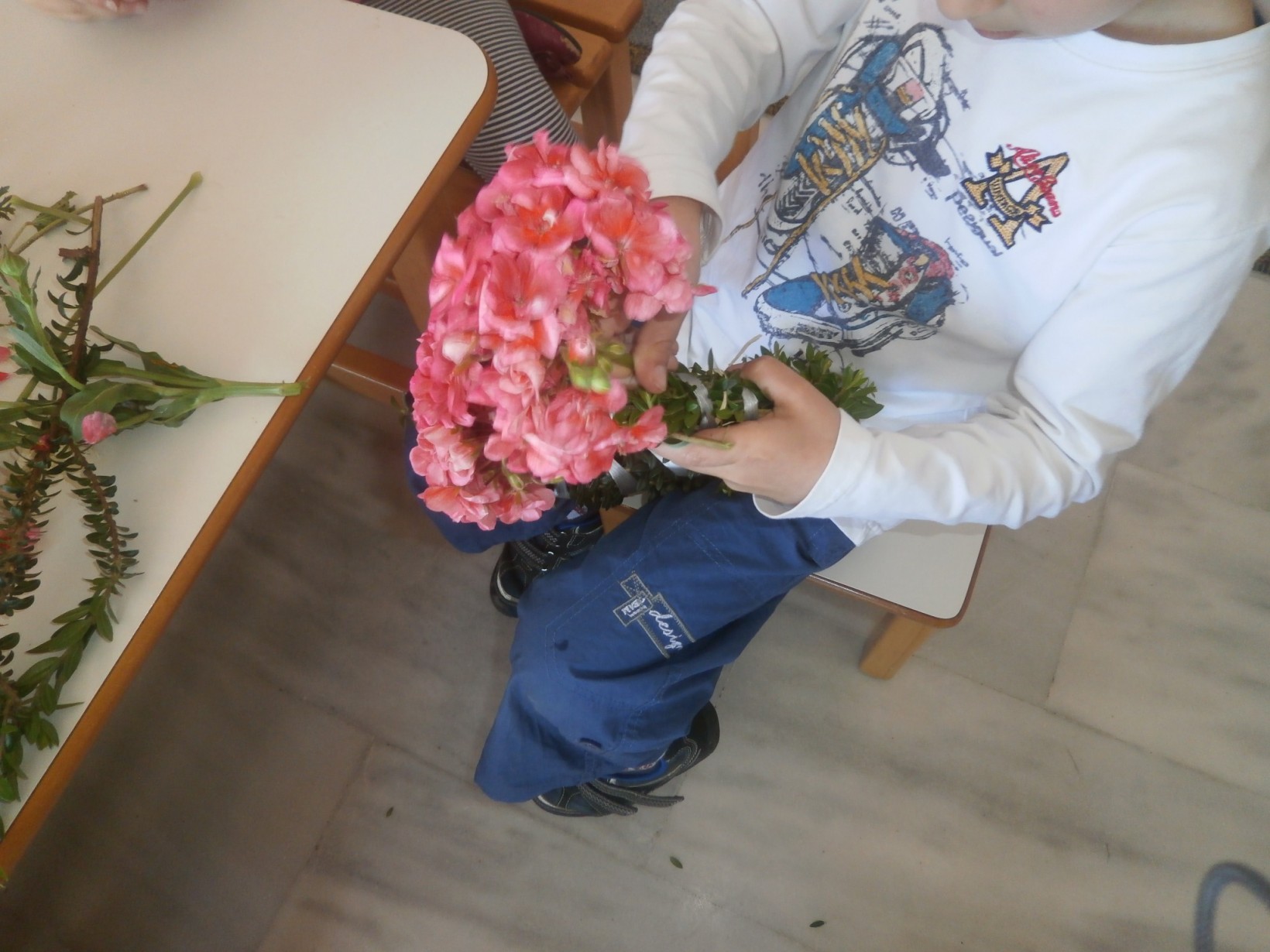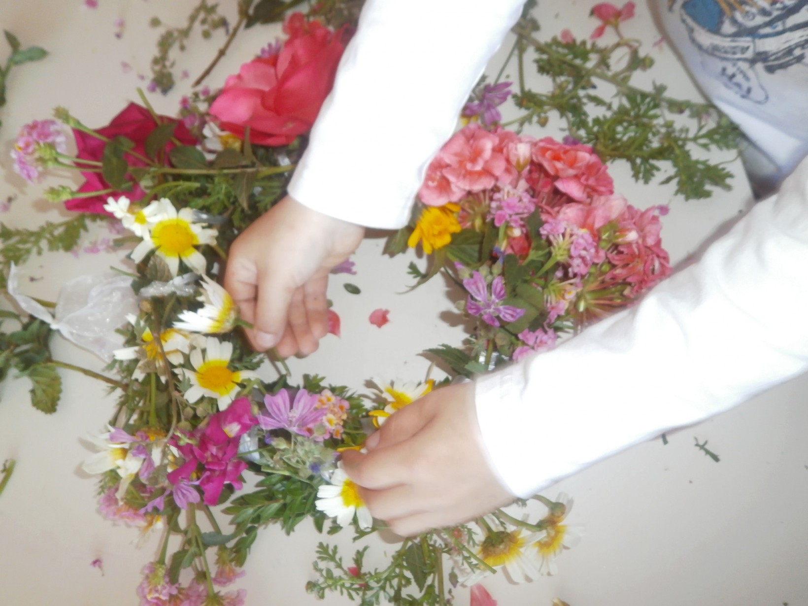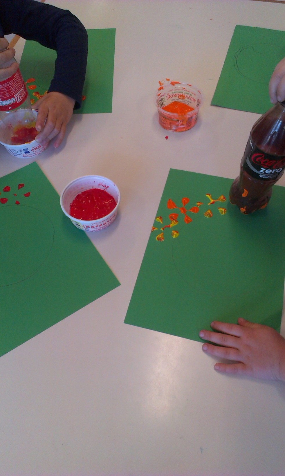 Τα παιδιά καλωσορίζουν τον Μάιο φτιάχνοντας στεφάνια σε χαρτί από τέμπερα,με μπουκάλι αναψυκτικού.