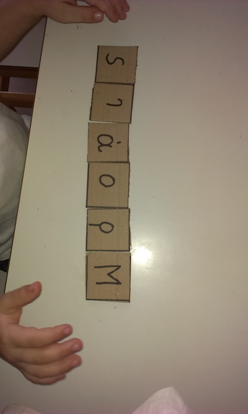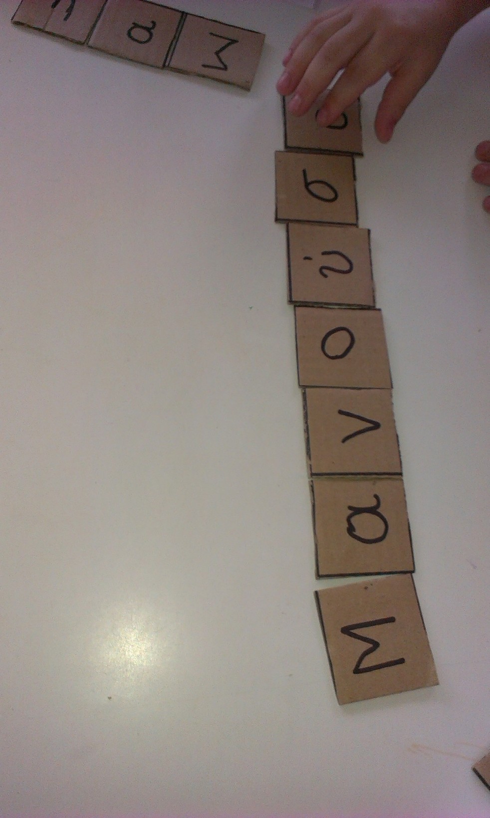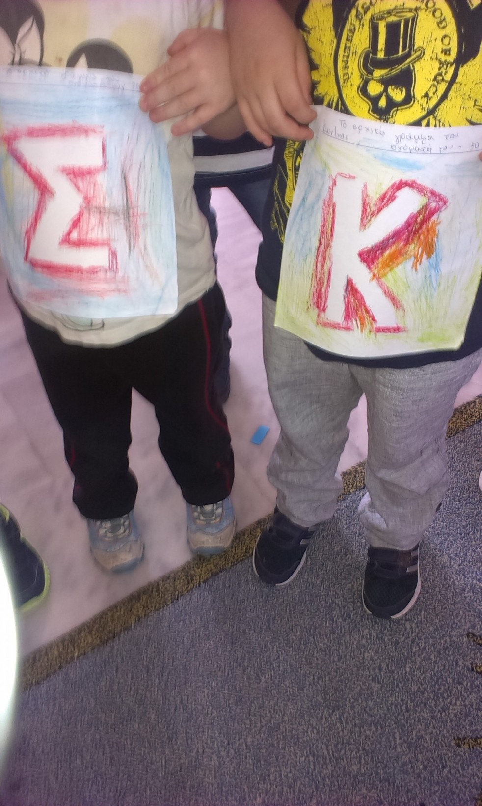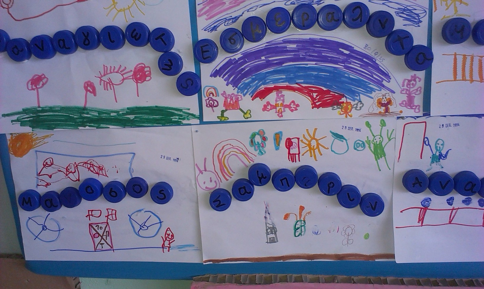 Με καπάκια και χαρτόνι, που ήταν γραμμένα τα γράμματα του ονόματος τους , έφτιαξαν το όνομα τους.