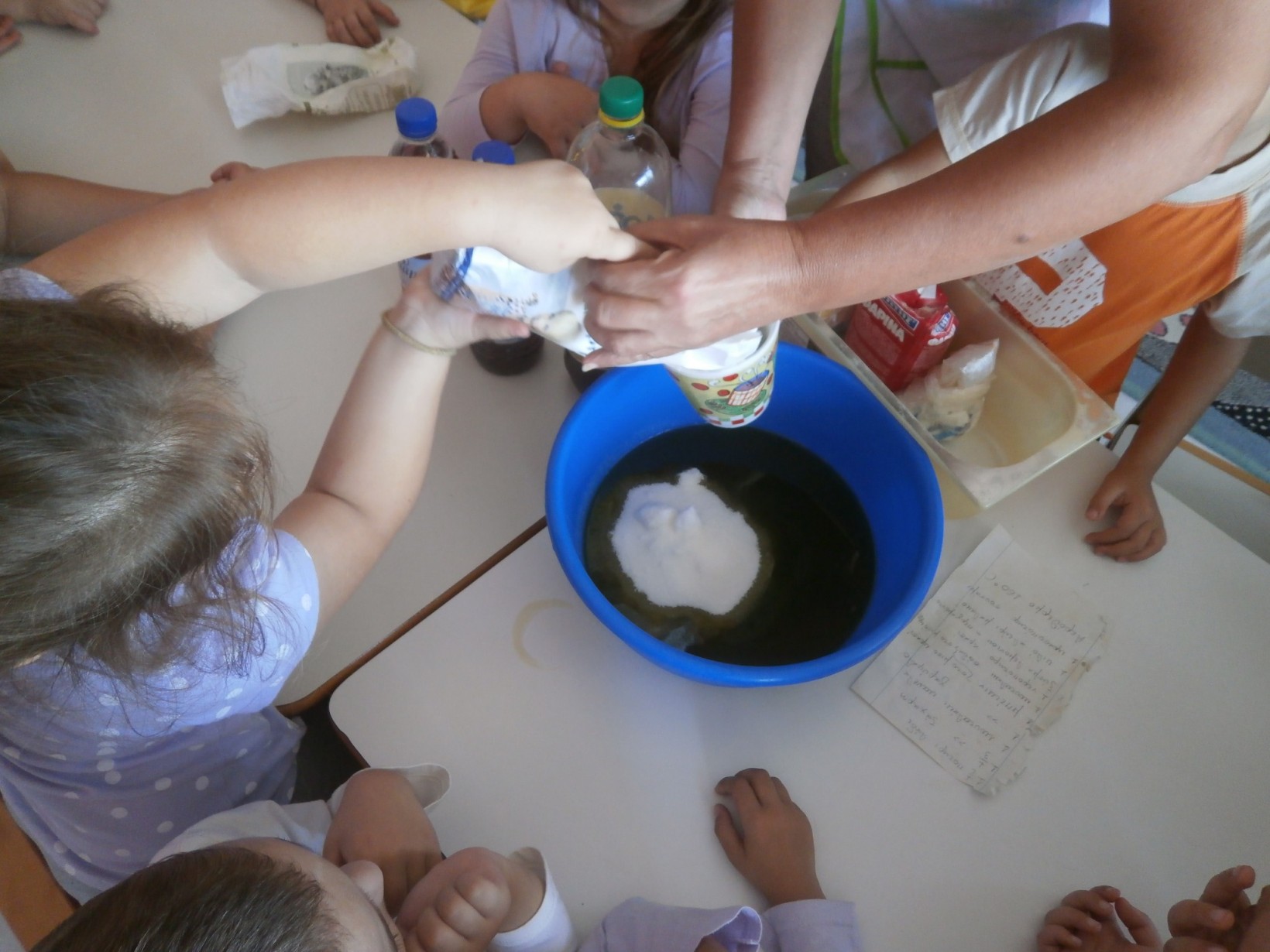 Μετρήσαμε ποσότητες, μυρίσαμε μυρωδιές, ανακαλύψαμε την ιδιότητα τις σόδας να αφρίζει, όταν την ρίξανε στο κρασί.