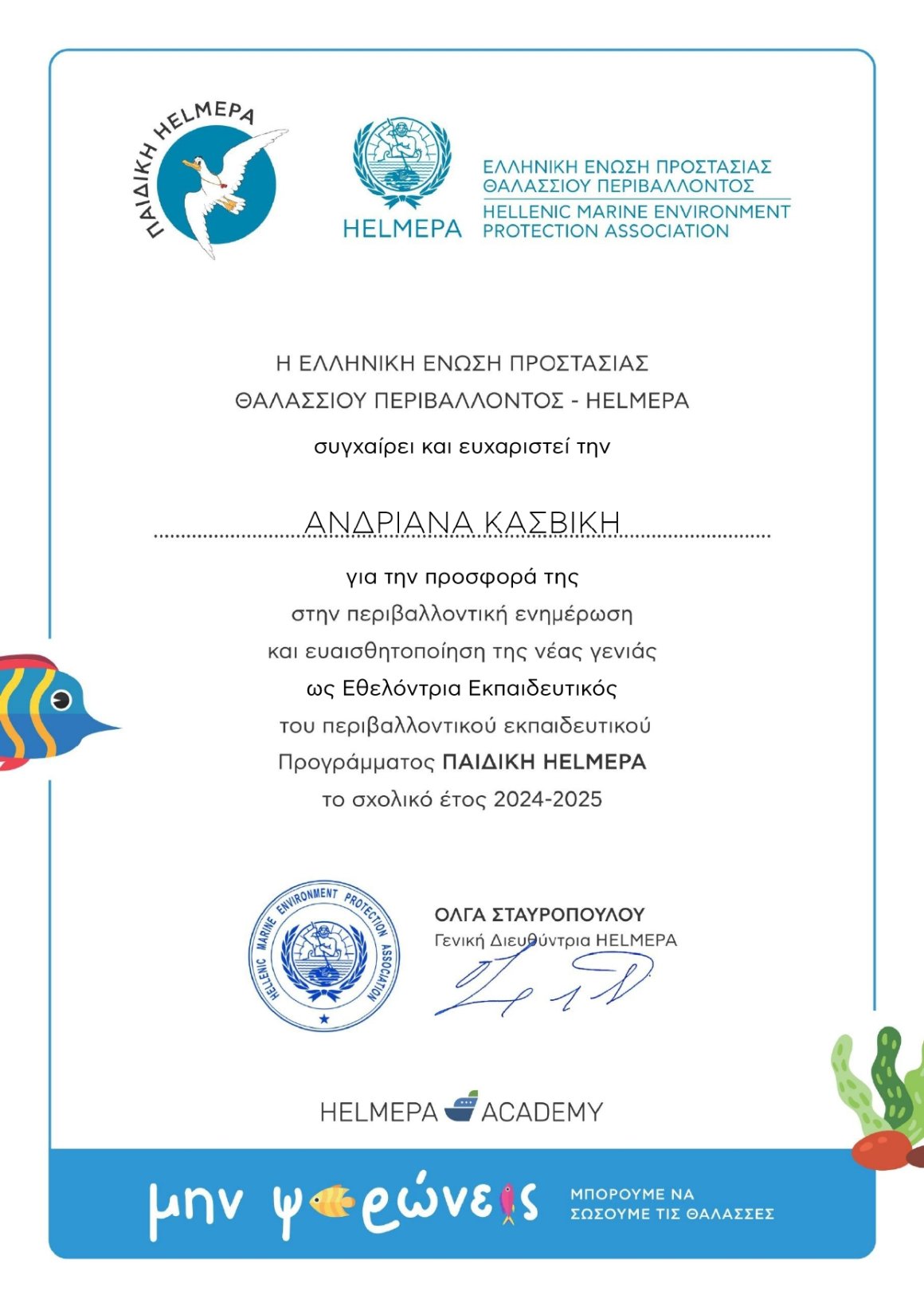 Στη συνέχεια, ακολουθεί η αναφορά δράσεων που στείλαμε και το αναμνηστικό μας δίπλωμα!