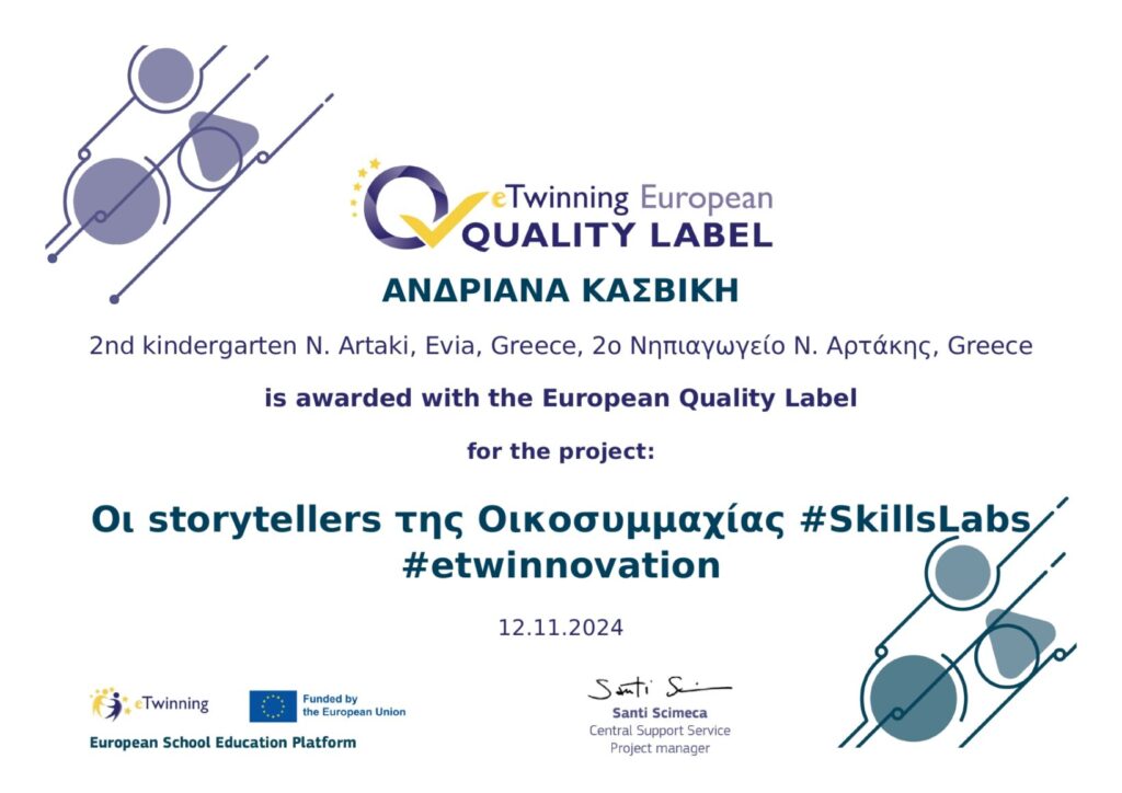 EΥΡΩΠΑΪΚΗ ΕΤΙΚΕΤΑ ΠΟΙΟΤΗΤΑΣ ΓΙΑ ΤΑ eTwinning ΕΡΓΑ ΠΟΥ ΑΝΑΛΑΒΑΜΕ ΤΟ ΣΧΟΛΙΚΟ ΕΤΟΣ 2023-2024