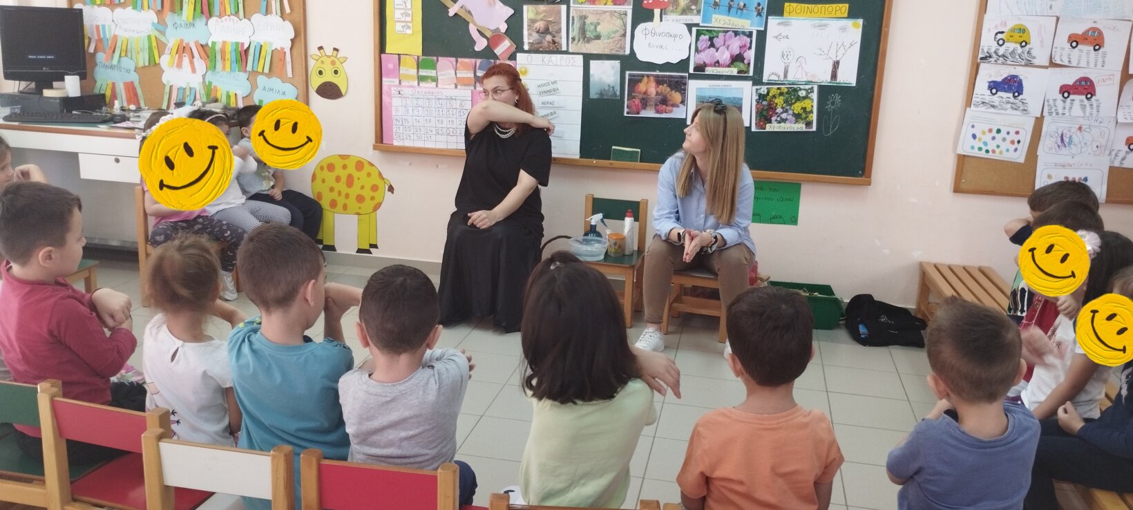 Με τρόπο βιωματικό μας έδειξαν πως πρέπει να πλένουμε σωστά τα χέρια μας. Επίσης μας μίλησα για τις εποχικές ιώσεις και για την ασπίδα που κάνουμε με το χέρι μας για να περιορίσουμε τη μεταφορά σταγονιδίων και την εξάπλωση των ιώσεων.