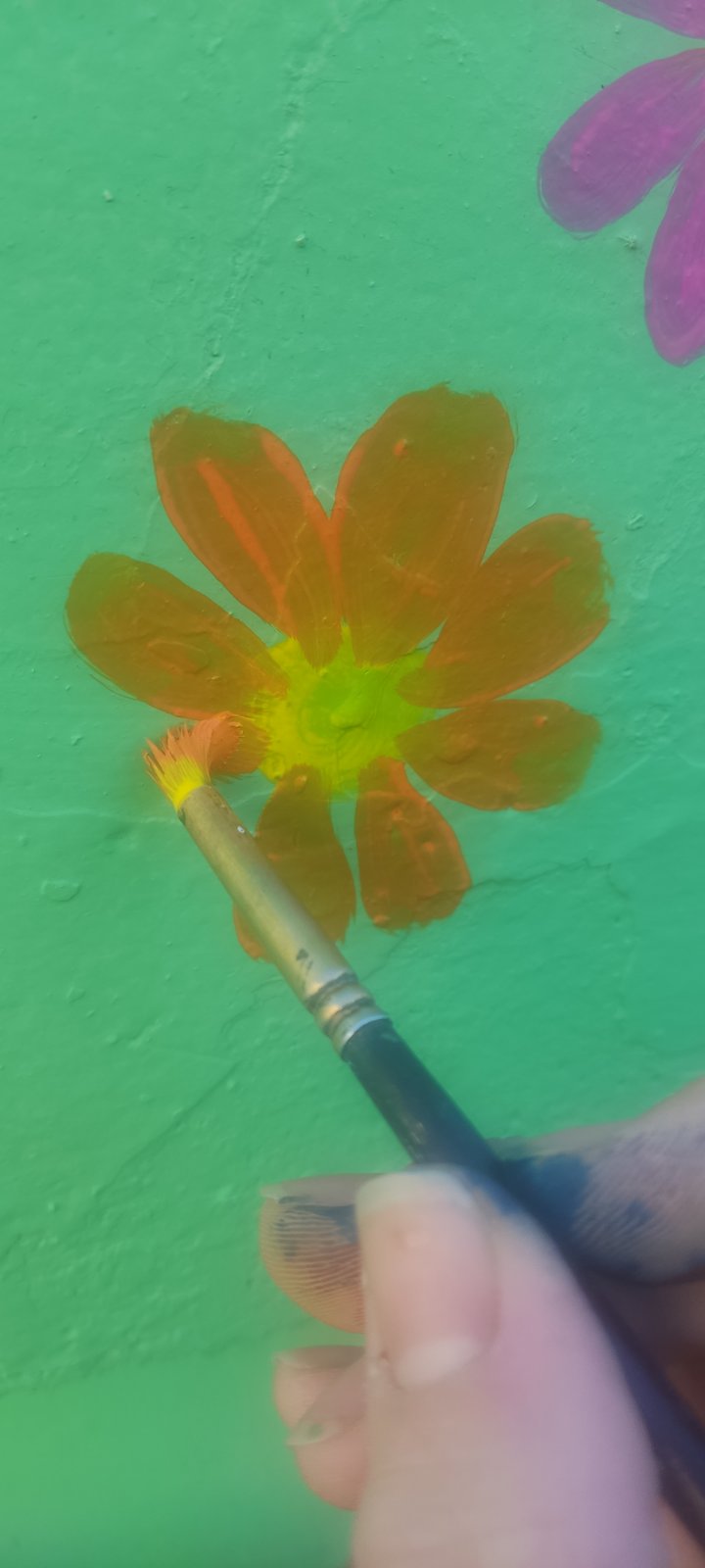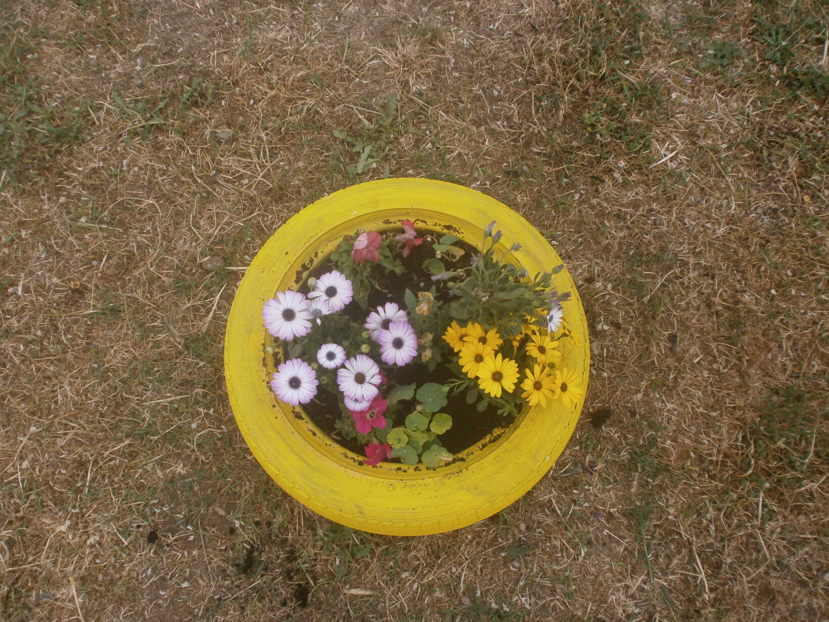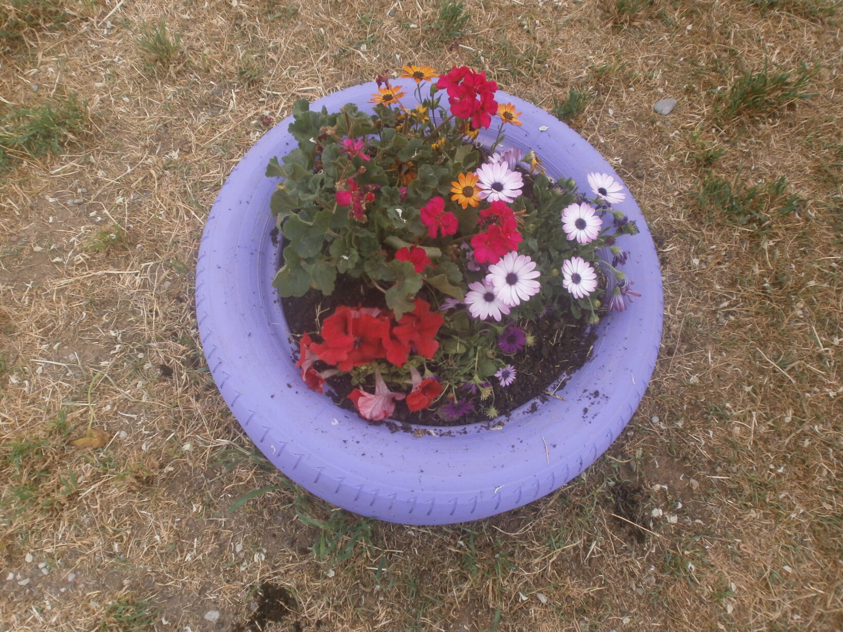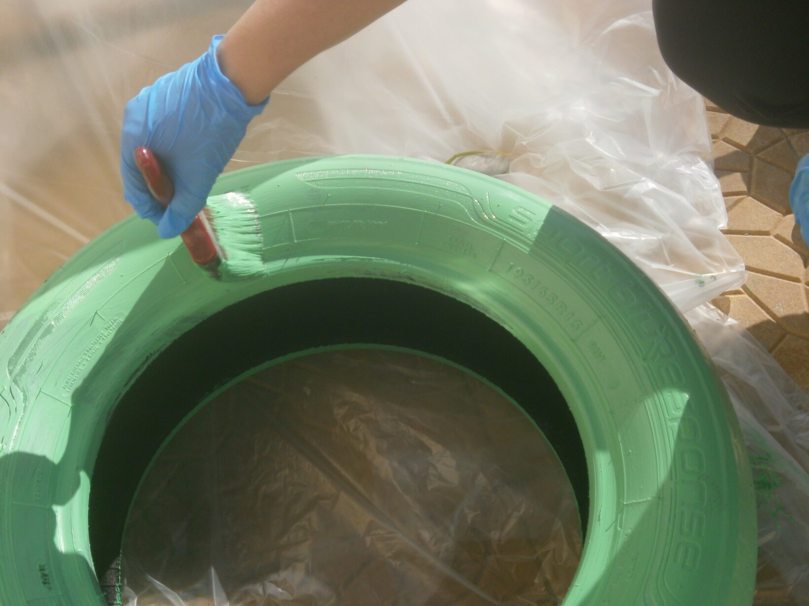 -Βάψιμο των ελαστικών για την δημιουργία του ανθόκηπου στο Νηπιαγωγείου μας.