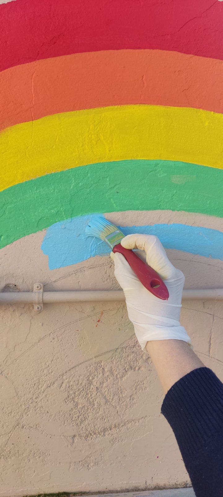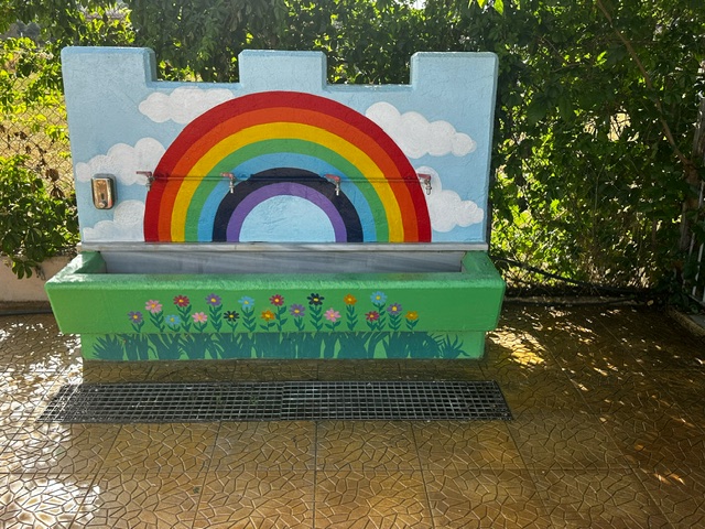 -Ζωγραφική παράστασης «το ουράνιο τόξο» στη βρύση του σχολείου από τη μητέρα μαθήτριας.