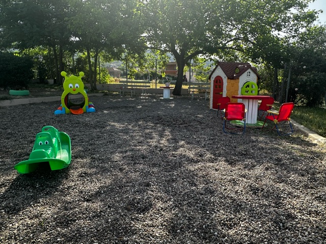 -Προμήθεια εξοπλισμού εξωτερικού χώρου ( μπασκέτα, τραμπάλα ,κάμπια, σπιτάκι ).