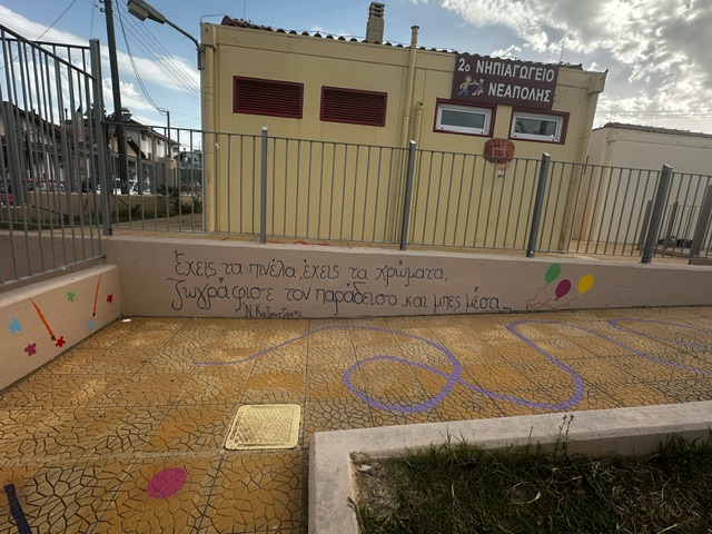 Tο σχέδιο δράσης με θέμα την αναδιαμόρφωση και τον εμπλουτισμό του αύλειου χώρου του Νηπιαγωγείου σχεδιάστηκε και υλοποιήθηκε από το 2ο Νηπιαγωγείο Νεάπολης κατά τη διάρκεια του σχολικού έτους 2023-2024.