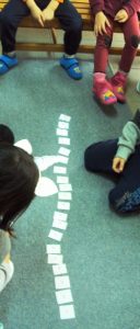 Κάθε παιδί της ομάδας ρίχνει με το ζάρι και κάνει τόσα βήματα όσα δίνει το ζάρι