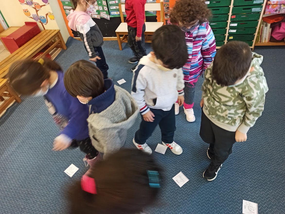 Τα παιδιά έπρεπε να ρίξουν το ζάρι στην μοκέτα στην οποία είχε εικόνες απο τα ζώα και τα παιδιά έπρεπε να θυμηθούν την λέξη με την υποστήριξη της κυρίας Ελένης. Παράλληλα μιλήσανε και για την χειμερία νάρκη.