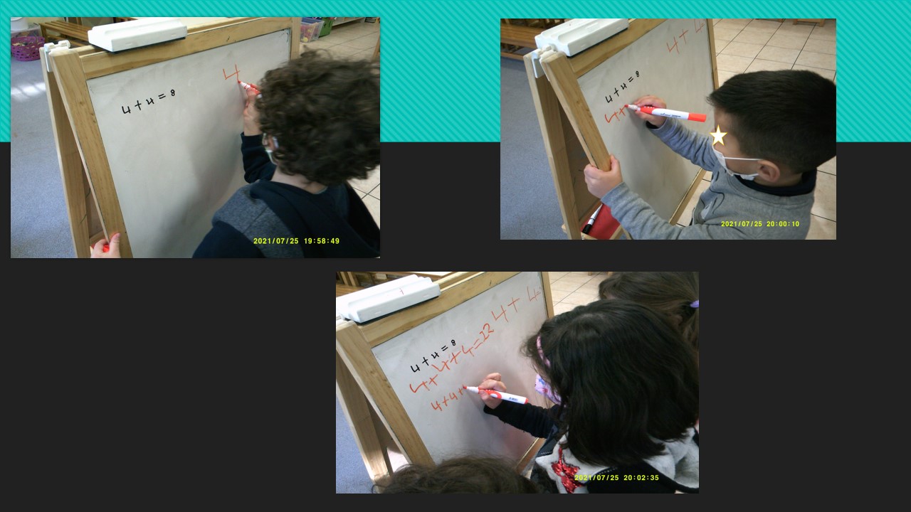 Διδάσκεται η έννοια της ομάδας, η έννοια της μονάδας μέσα στην ομάδα πράγμα το οποίο τα παιδιά μπερδεύουν και καλούνται να απαντήσουν σε ερωτήματα.Πόσες ομάδες έχει η μοκέτα ;Πόσα πράγματα έχει η κάθε ομάδα; Στη συνέχεια καλούνται να μετρήσουν με τα ξυλάκια αρίθμισης αντιστοιχίζοντας ξυλάκι και πράγμα και εκπαιδεύονται στην έννοια της πρόσθεσης κάθε φορά που διδάσκονται εναν αριθμό με το εποπτικό υλικό της μοκέτας γνωρίζοντας παράλληλα τα σύμβολα της πρόσθεσης, κατανοώντας την σημασία και την χρήση των συμβόλων και αποτυπώνοντας κάθε φορά την αριθμητική παράσταση που ζητάει η δασκάλα.