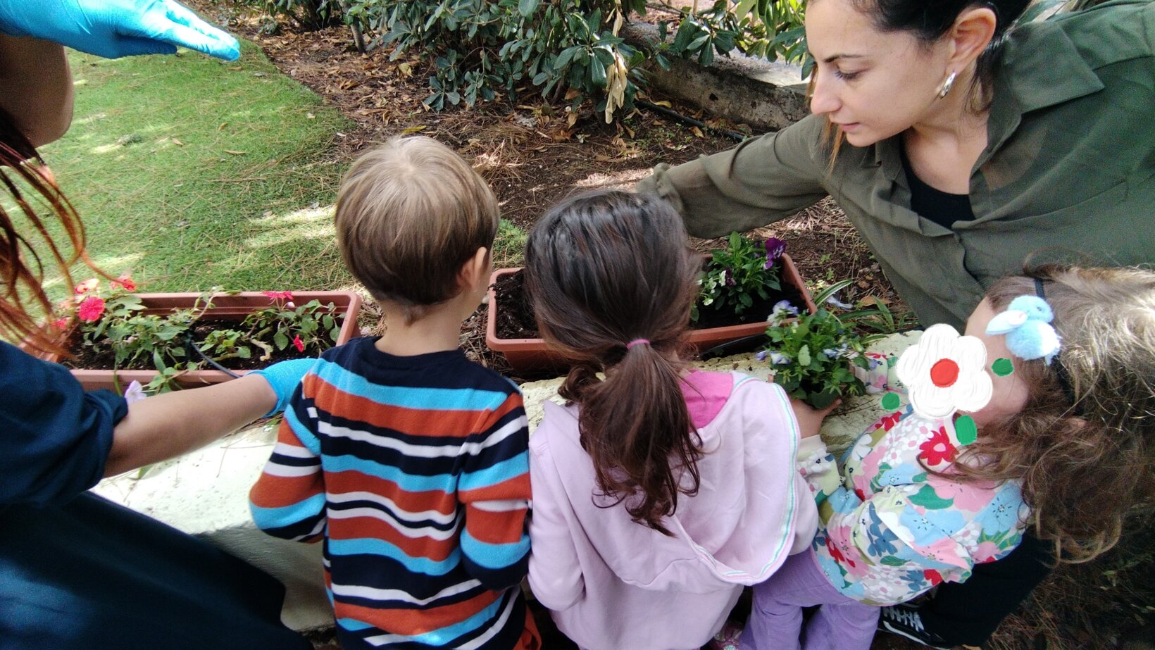 Κατ’όπιν της προβολής ακολούθησε το πρακτικό μέρος της δράσης όπου οι μαθητές συμμετείχαν σε μεταφύτευση λουλουδιών σε ζαρντινιερες του σχολείου με σκοπό την αναβάθμιση της αυλής όπως είναι και το σχέδιο δράσης.Τα παιδιά παρατήρησαν το ριζικό σύστημα των λουλουδιών καθώς οι υπεύθυνοι το έβγαζαν απο την γλάστρα και στη συνέχεια ανα τριάδα το τοποθετούσαν μέσα σε ήδη ανοιγμένα λακάκια και με τα χεράκια τους σαν φτυάρια σκέπαζαν τις ρίζες του φυτού.
