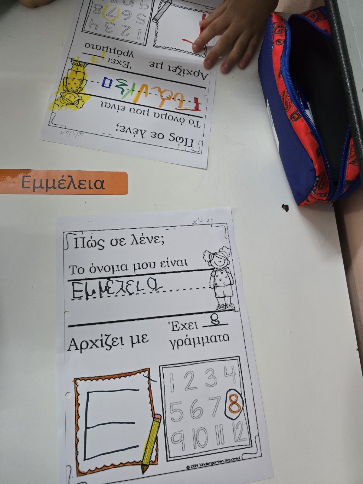 Αρχικό γράμμα και Όνομα Το όνομα είναι η ταυτότητα του παιδιού! Στο νηπιαγωγείο τα παιδιά μπαίνουν στη διαδικασία να αναγνωρίσουν το αρχικό γράμμα του ονόματός τους , να συγκρίνουν, να συνειδητοποιήσουν τον ήχο του φωνήματος, να μετρήσουν από πόσα γράμματα αποτελείται και να κάνουν τις πρώτες προσπάθειες γραφής του! Με διασκεδαστικές δραστηριότητες και φύλλα εργασίας τα κατάφεραν και τους αξίζουν συγχαρητήρια!!!! Στο τέλος έφτιαξαν “τον ήλιο της τάξης “γράφοντας όπως μπορούσαν το όνομά τους!