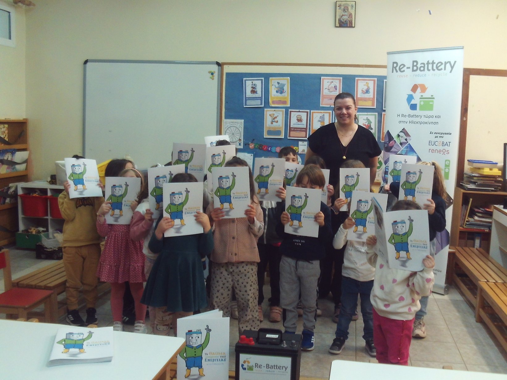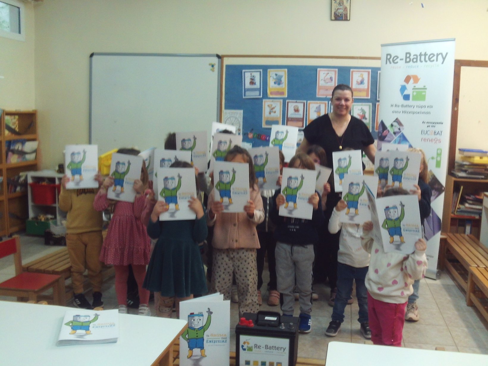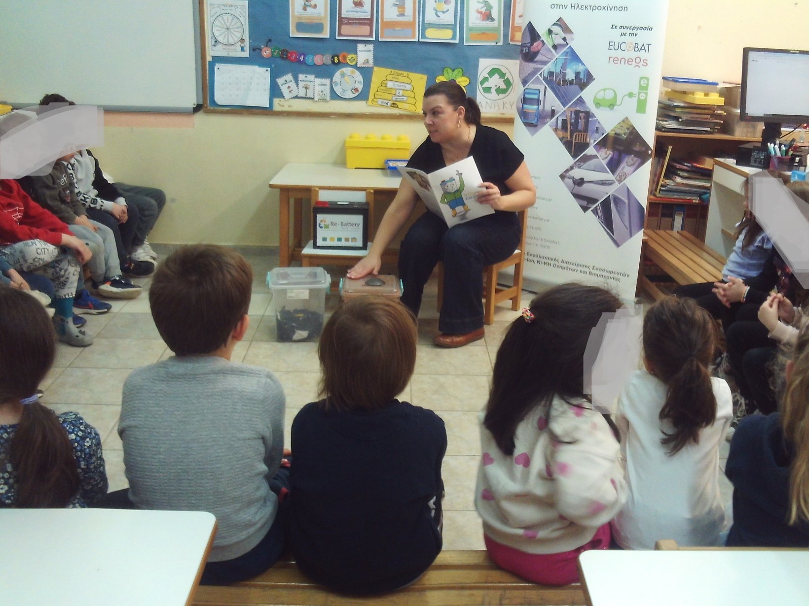 Είχαμε τη χαρά κάνοντας το τελευταίο εργαστήριο δεξιοτήτων για την ανακύκλωση να έρθει στο σχολείο μας η κ.Ματίνα Ζιώγα Πολιτικός μηχανικός περιβαλλοντολόγος υπεύθυνη τμήματος ανακύκλωσης μπαταριών. Διάβασε στα παιδιά ένα μικρό βιβλίο με πληροφορίες σχετικά με το θέμα και χάρισε από ένα αντίγραφο στον κάθε μαθητή.