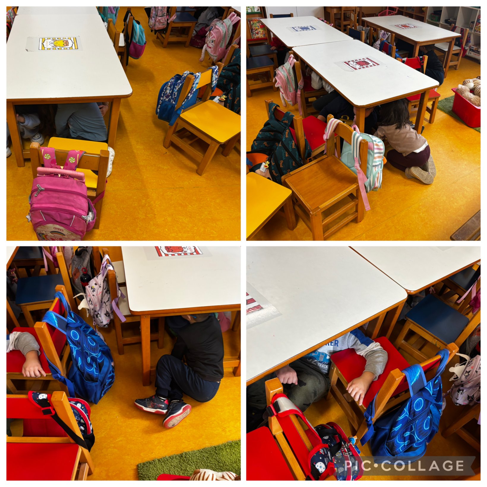 Tην Δευτέρα , 10/11 , μεταξύ άλλων, την ώρα των οργανωμένων δραστηριοτήτων , πραγματοποιήθηκε στο Νηπιαγωγείο μας  άσκηση σεισμού και για τα δύο τμήματα, όπως προγραμματίστηκε εξάλλου και στο μνημόνιο ενεργειών για τη διαχείριση σεισμικού κινδύνου  της σχολικής μονάδας .