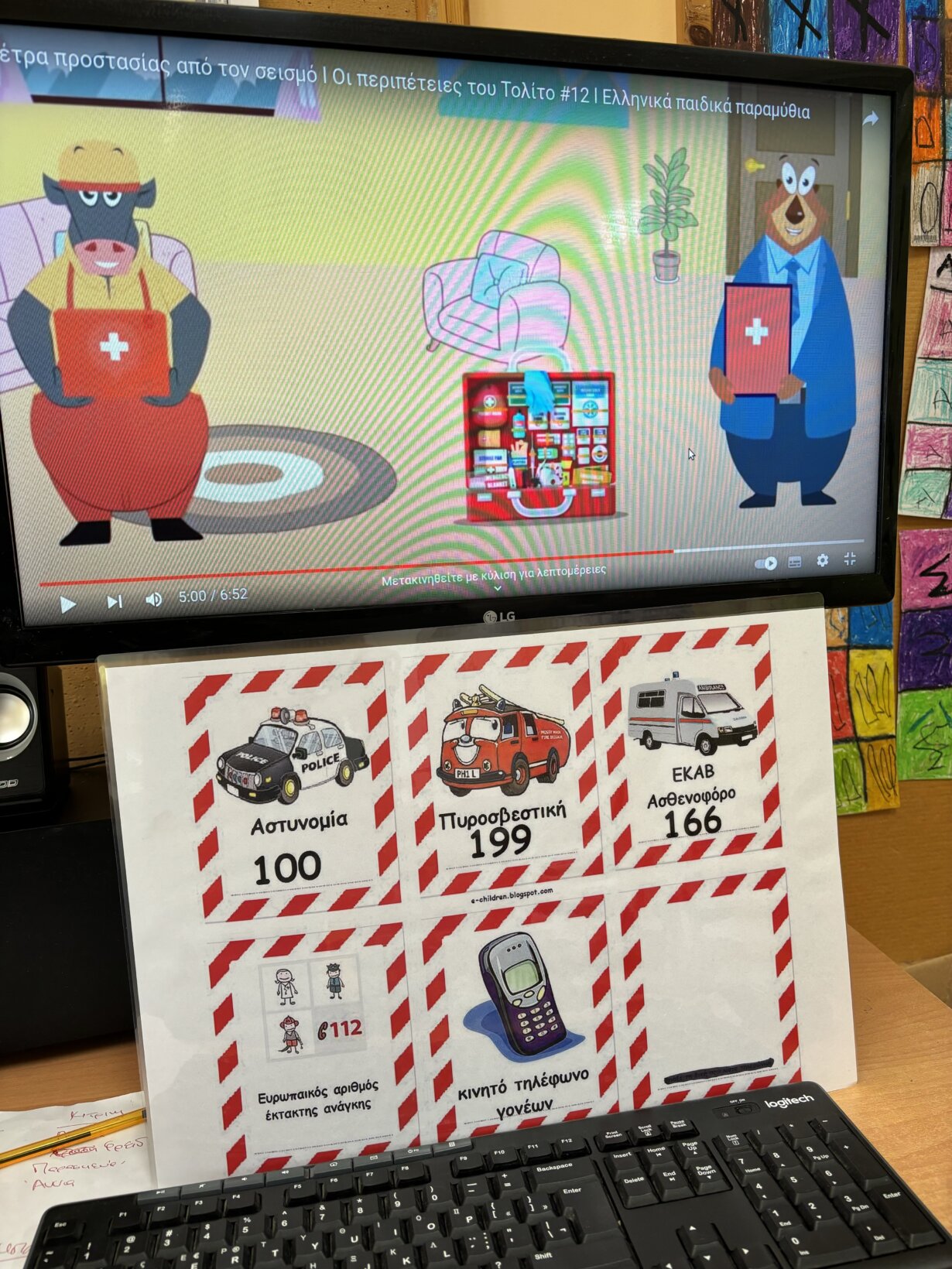 Τα παιδιά ενημερώθηκαν και συζήτησαν για το σεισμό, τα προβλήματα που προκύπτουν, καθώς και τους τρόπους προφύλαξης , μέσα και έξω από τον χώρο του Νηπιαγωγείου. Παρακολούθησαν σχετικά εκπαιδευτικά videos  https://kids.oasp.gr/, χόρεψανhttps://www.youtube.com/watch?v=zIS0GItfJS4   και έμαθαν σχετικά τραγούδια.