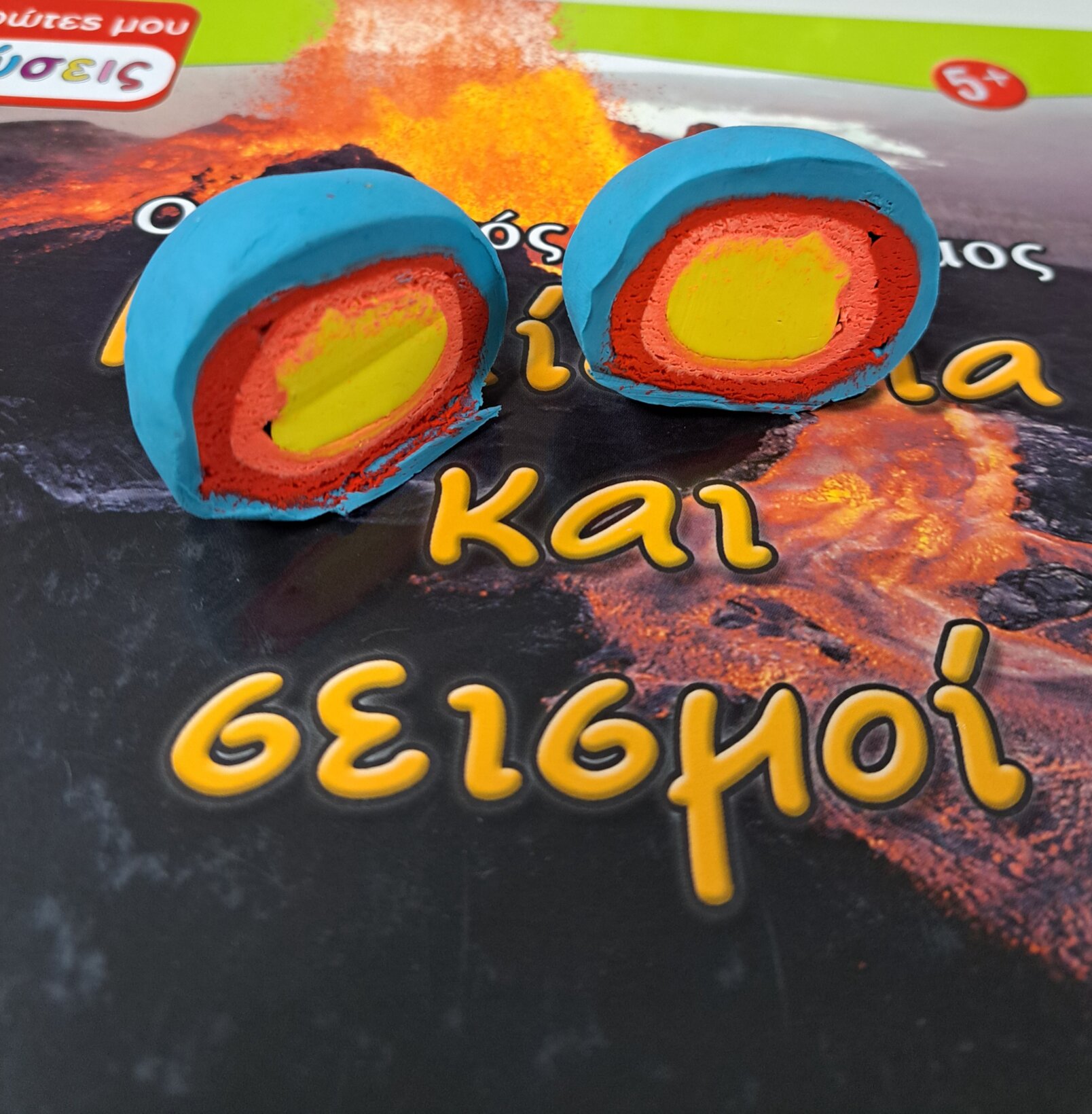 Κάνουμε τη γη με πλαστελίνη, την κόβουμε στη μέση και βλέπουμε το εσωτερικό της. Ακολουθεί ατομική εργασία.