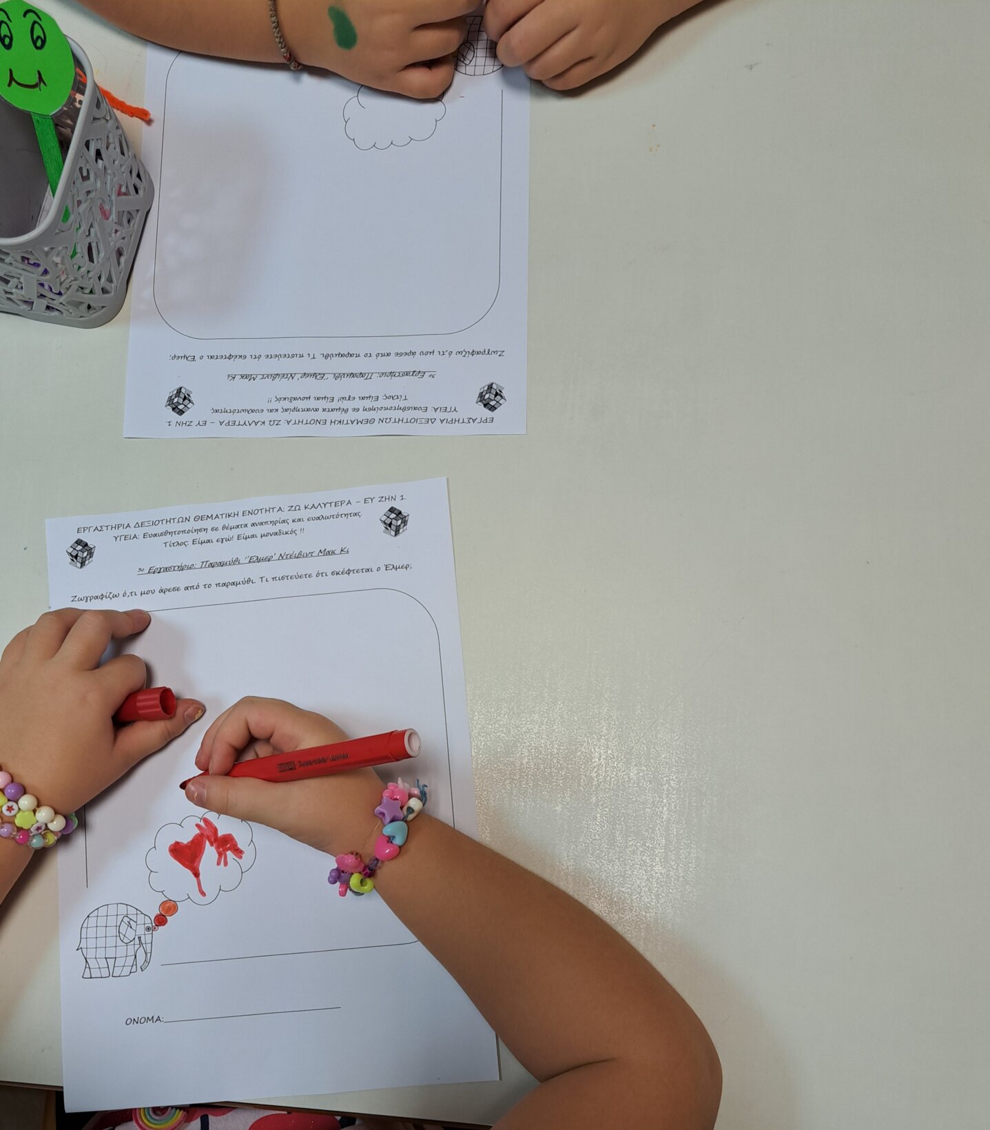 Σε φύλλο αξιολόγησης τα παιδιά αποτυπώνουν τις νέες τους γνώσεις.