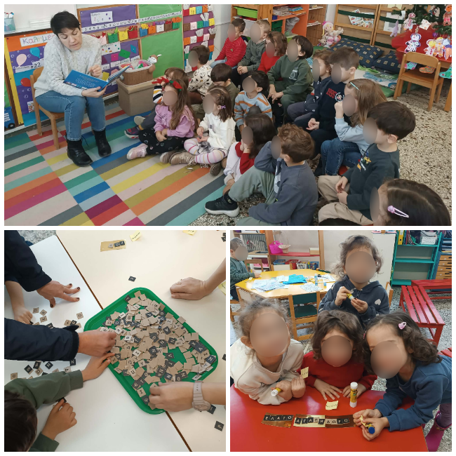 Ιδιαίτερα συγκινητική ήταν η παρουσία μητέρας μαθητή μας, η οποία επισκέφθηκε το σχολείο και διάβασε στα παιδιά ένα χριστουγεννιάτικο παραμύθι. Η δράση αυτή έφερε τη φωνή της οικογένειας μέσα στην εκπαιδευτική διαδικασία και δημιούργησε ένα κλίμα οικειότητας και ασφάλειας. Στη συνέχεια, μικροί και μεγάλοι συνεργάστηκαν για να κατασκευάσουν χριστουγεννιάτικα στολίδια, στα οποία τα παιδιά πρόσθεσαν λέξεις-ευχές, αποτυπώνοντας σκέψεις, συναισθήματα και μηνύματα αγάπης.