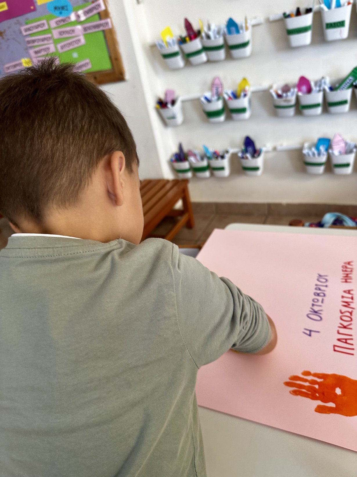 Ξεκινήσαμε συζητώντας για το τι σημαίνει «δικαίωμα» και πώς κάθε παιδί στον κόσμο πρέπει να μεγαλώνει με αγάπη, ασφάλεια, φροντίδα και σεβασμό. Μαζί φτιάξαμε μια μεγάλη αφίσα με τα βασικά δικαιώματα των παιδιών, την οποία διακόσμησαν οι μικροί μας μαθητές. Επιπλέον, δημιούργησαν μια κατασκευή σε σχήμα χεριού , συμβολίζοντας ότι τα δικαιώματα “ανήκουν στα χέρια τους” και ότι κάθε παιδί μπορεί να τα υποστηρίζει και να τα εκφράζει.