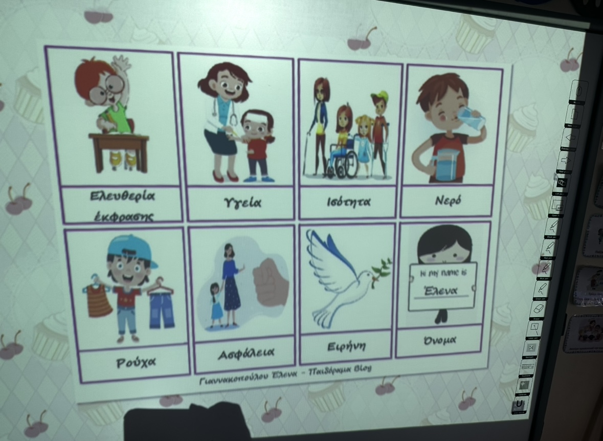 τρόπο νέες αγγλικές λέξεις σχετικές με τα δικαιώματα, ενισχύοντας τη γλώσσα μέσα από παιχνίδι και βιωματική μάθηση.