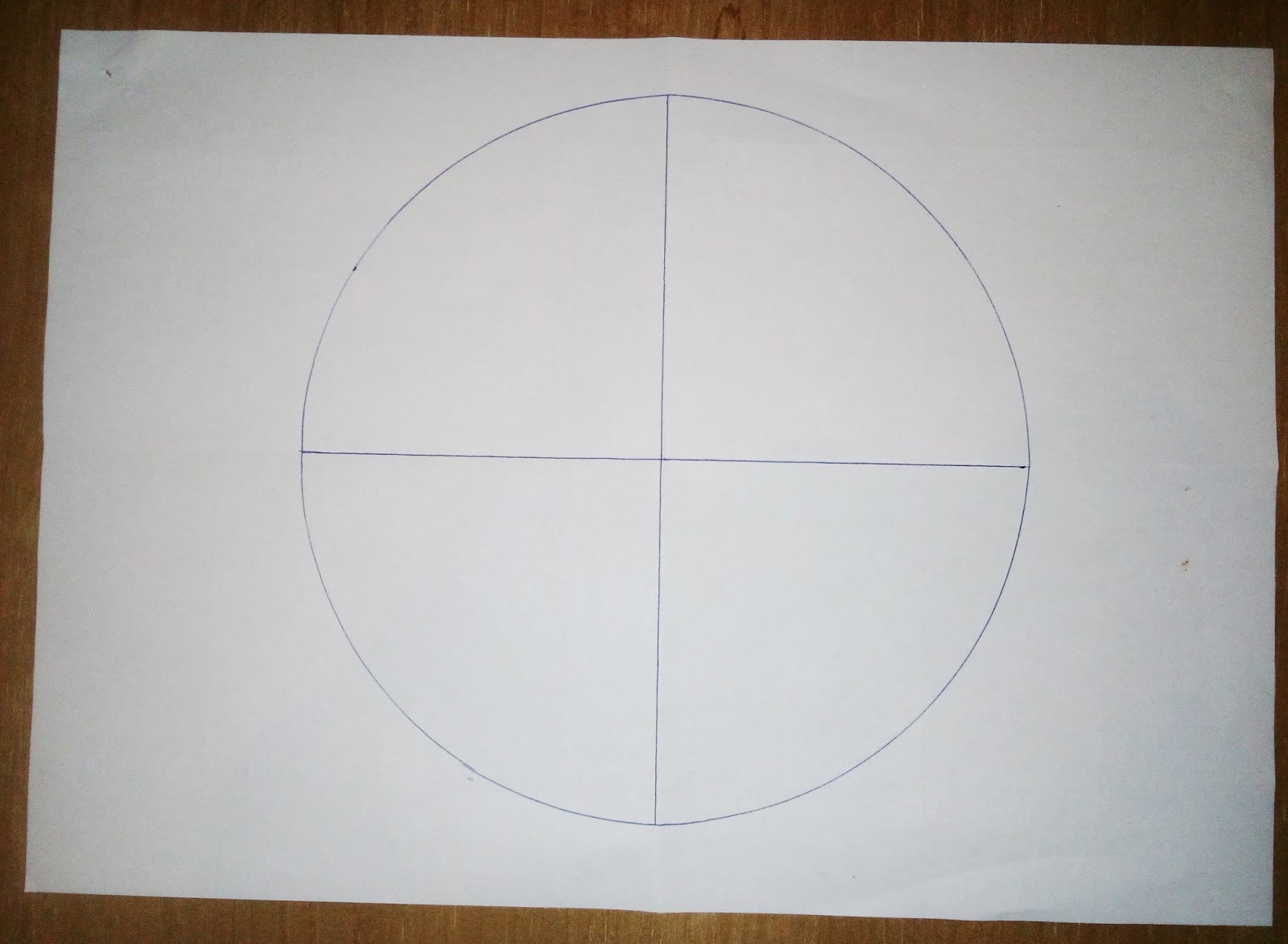 Βήμα 3ο : Με το στυλό χωρίζουμε σε τέσσερα κομμάτια τον κύκλο μας