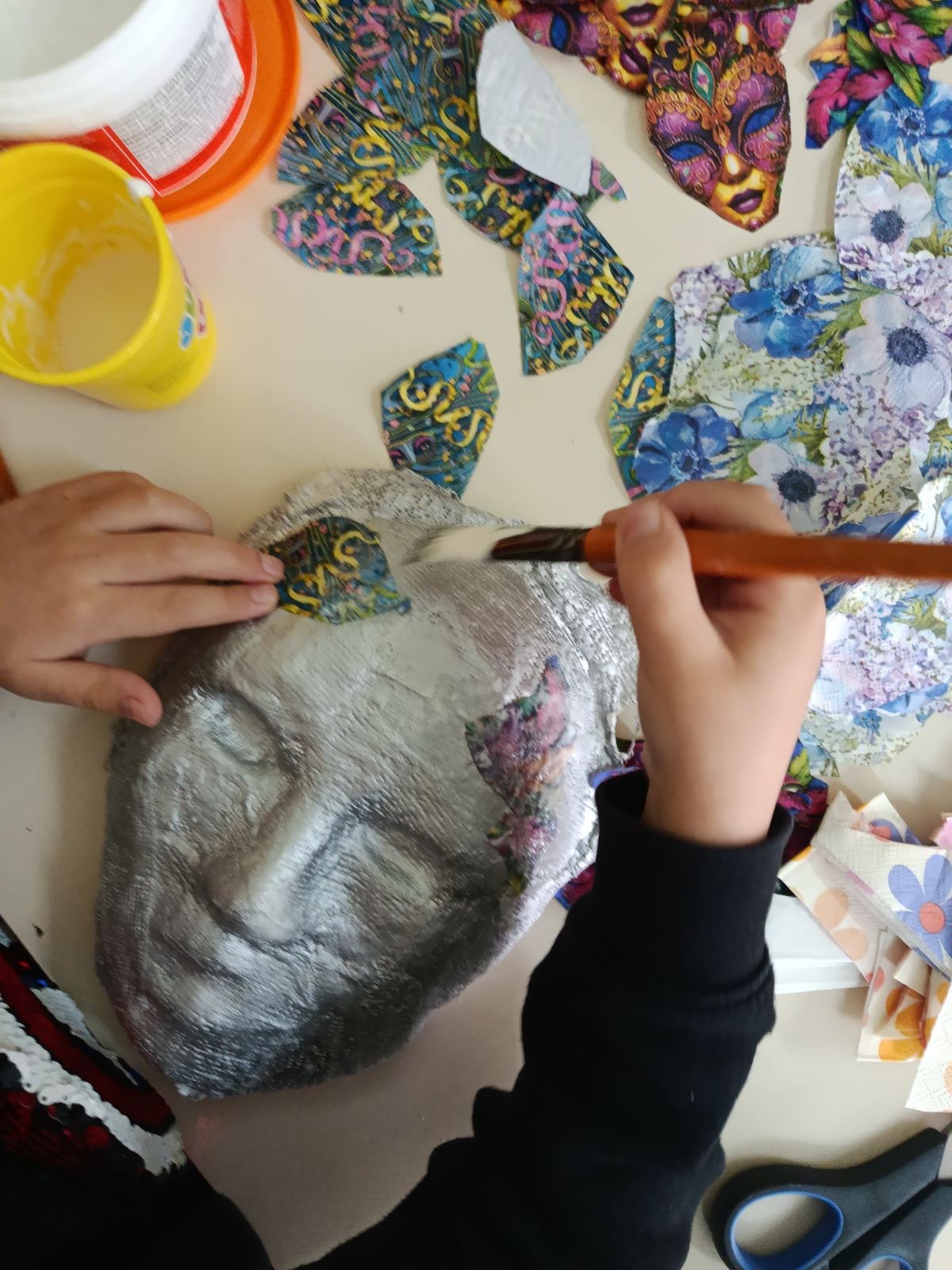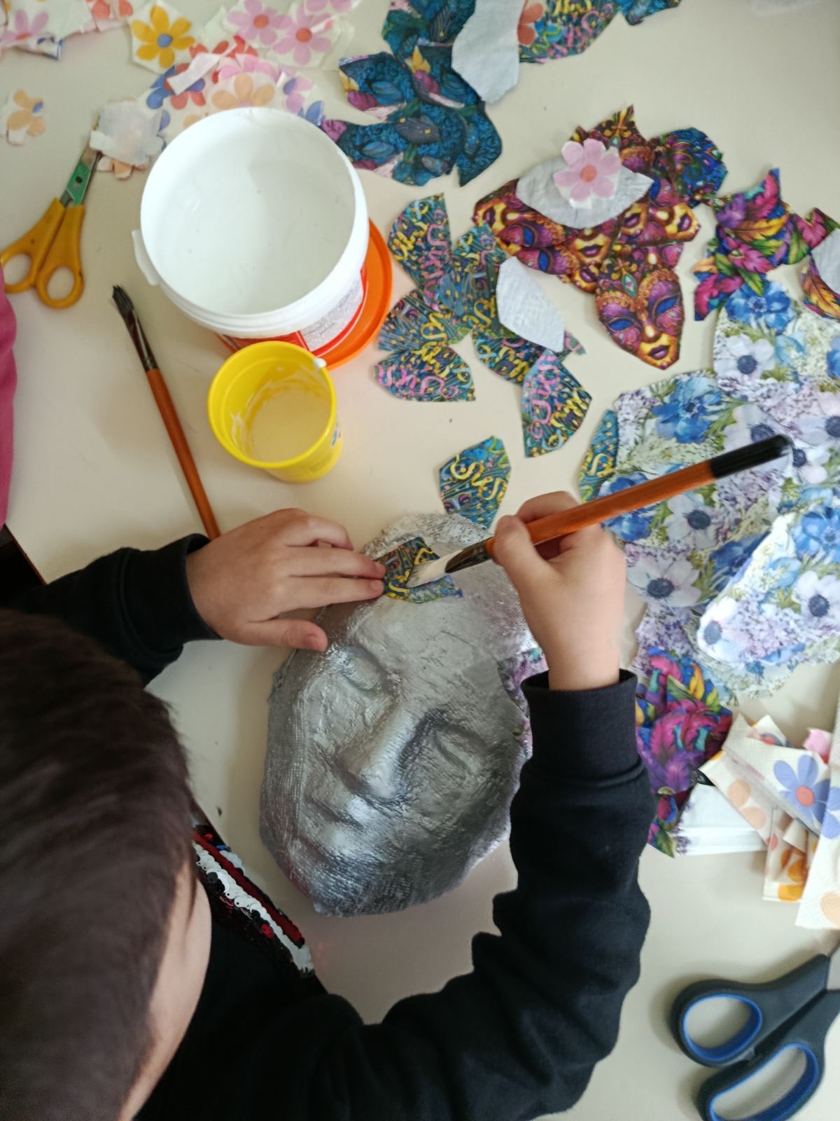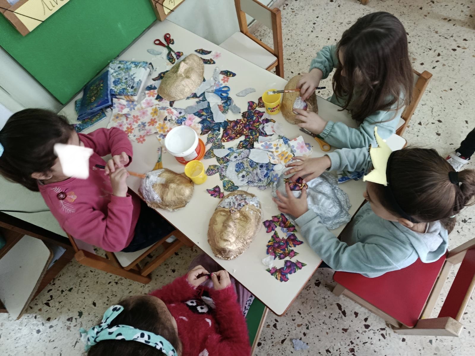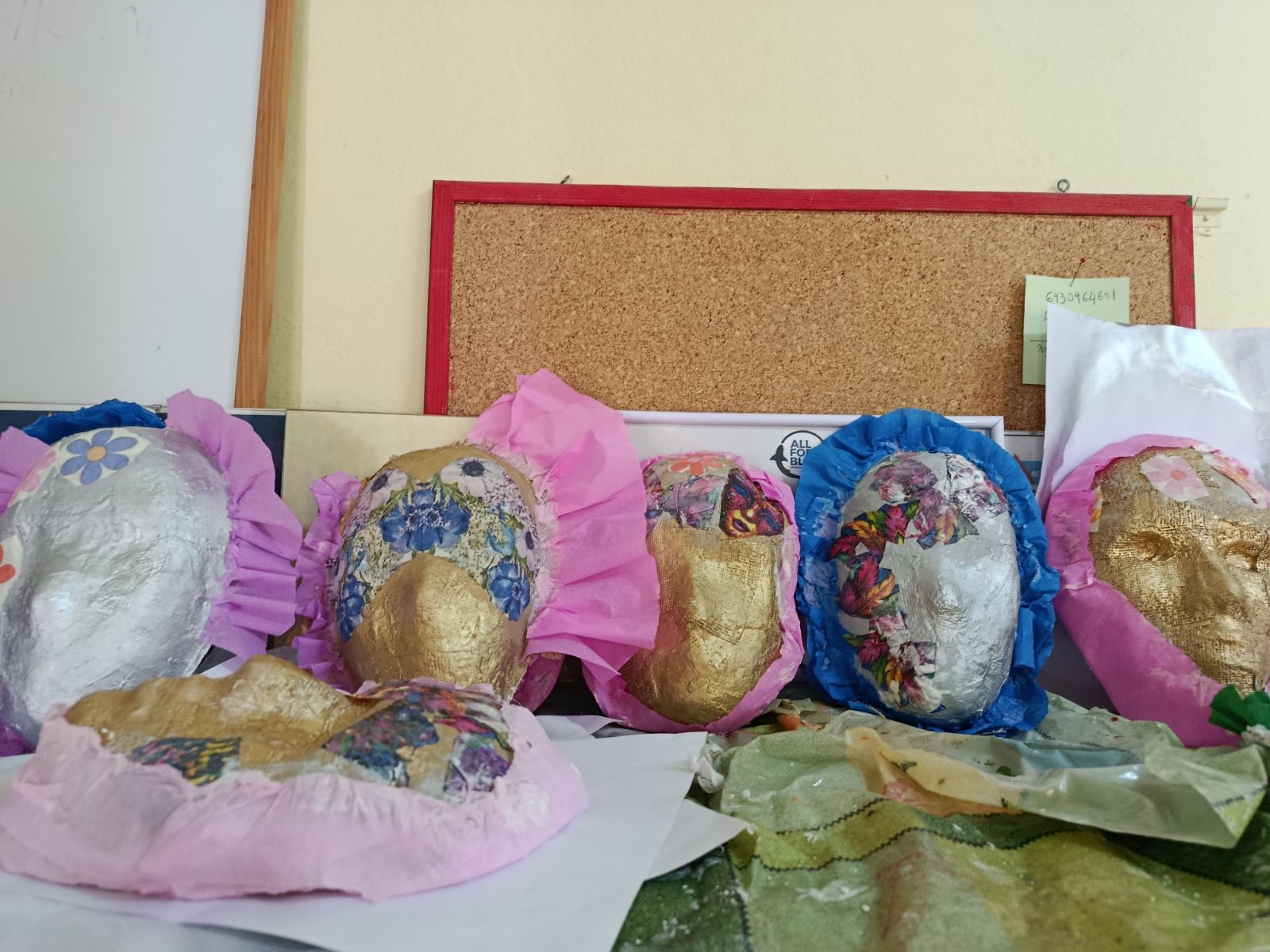 Μάσκες από γυψογαζα, διακοσμημένες με σπρέι και ντεκουπαζ με χαρτοπετσέτες