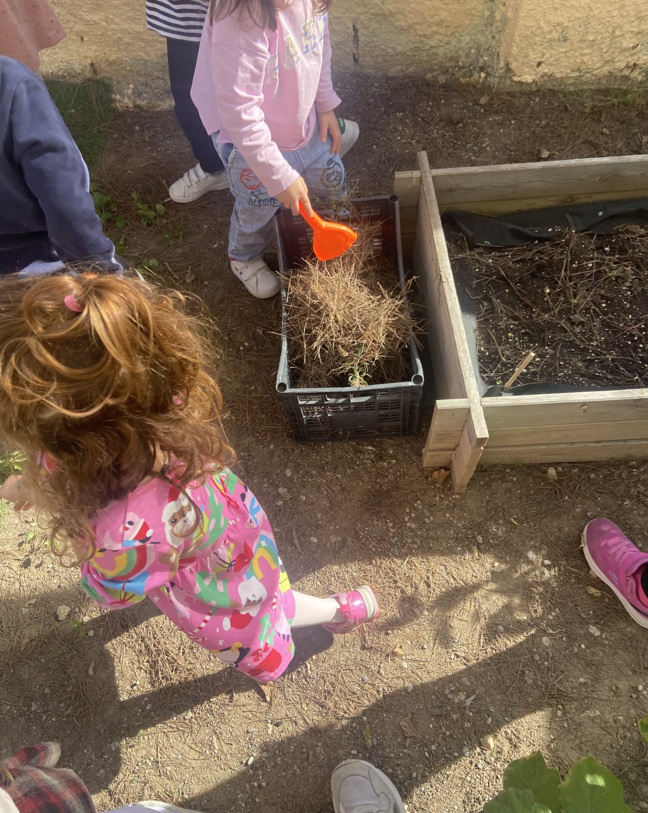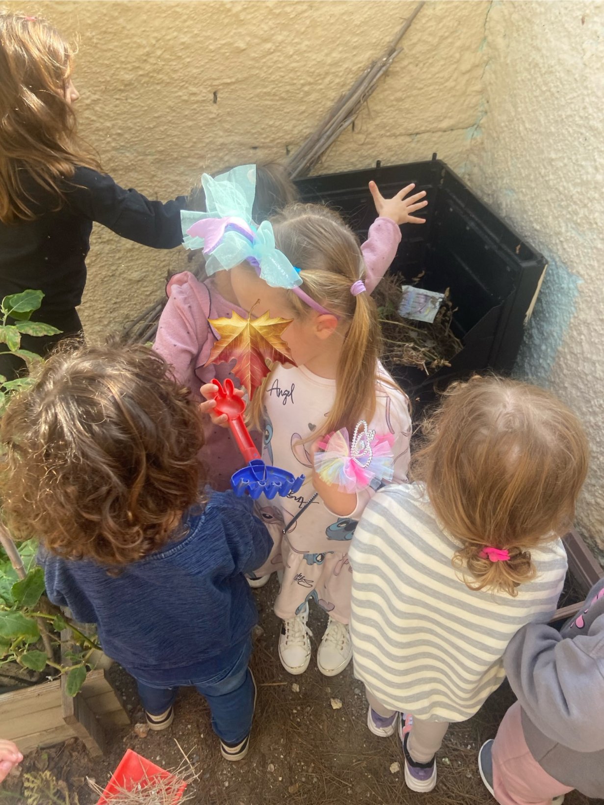Η κομποστοποίηση αρχικά έγινε στα παρτέρια μας αλλά καθώς έφτασε η εποχή της σποράς αγοράσαμε με τη βοήθεια των γονέων έναν κομποστοποιητή για να γίνεται καθόλη τη διάρκεια της χρονιάς!