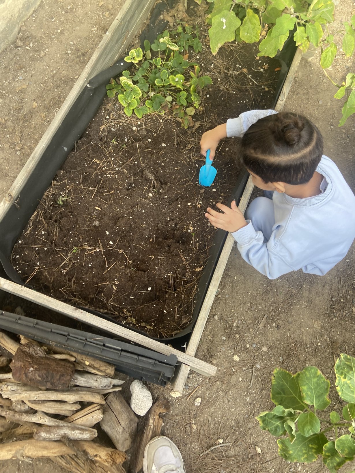σκαλίσαμε και προετοιμάσαμε το χώμα για τα νέα φυτά