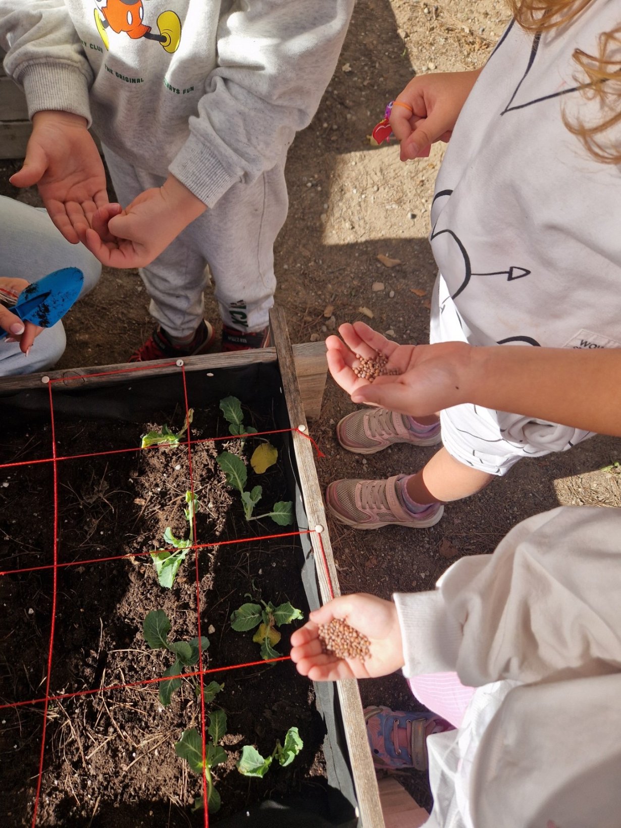 Βάλαμε διάφορα σποράκια μέσα στην τάξη σε βαμβάκι και παρατηρήσαμε πως μεγαλώνουν. Στη συνέχεια τα μεταφέραμε έξω σε πιο μεγάλες γλάστρες.
