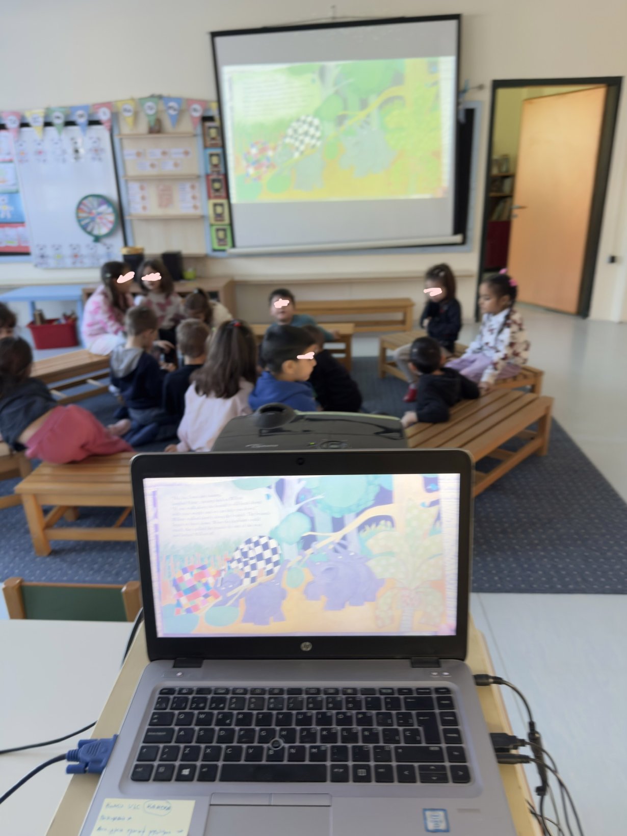 Στο πλαίσιο του ευρωπαϊκού προγράμματος “Elmer’s Colorful Journey”, οι μαθητές του νηπιαγωγείου συμμετείχαν σε μια σειρά δημιουργικών και συνεργατικών δραστηριοτήτων με αφετηρία το παιδικό βιβλίο «Elmer and Wilbur» του David McKee. Η αξιοποίηση της λογοτεχνικής αφήγησης αποτέλεσε την αφετηρία για την καλλιέργεια δεξιοτήτων κατανόησης, δημιουργικής σκέψης, συνεργασίας και επίλυσης προβλημάτων.