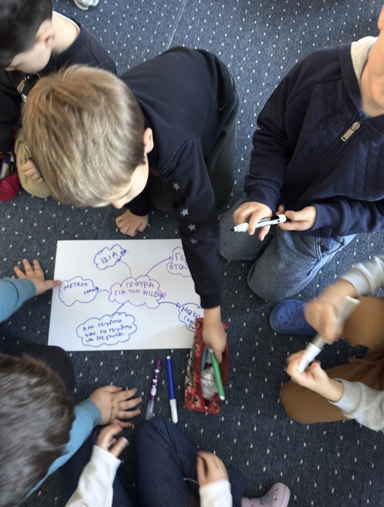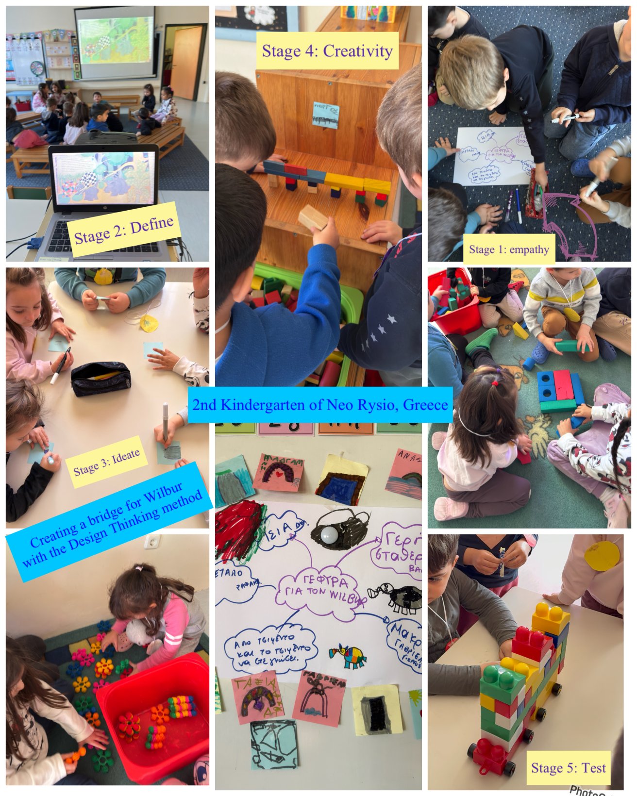 Η διαδικασία ξεκίνησε με το στάδιο της κατανόησης του προβλήματος (Empathize), κατά το οποίο τα παιδιά συζήτησαν για την ανάγκη του Elmer να περάσει το ποτάμι ώστε να συναντήσει τον φίλο του Wilbur.