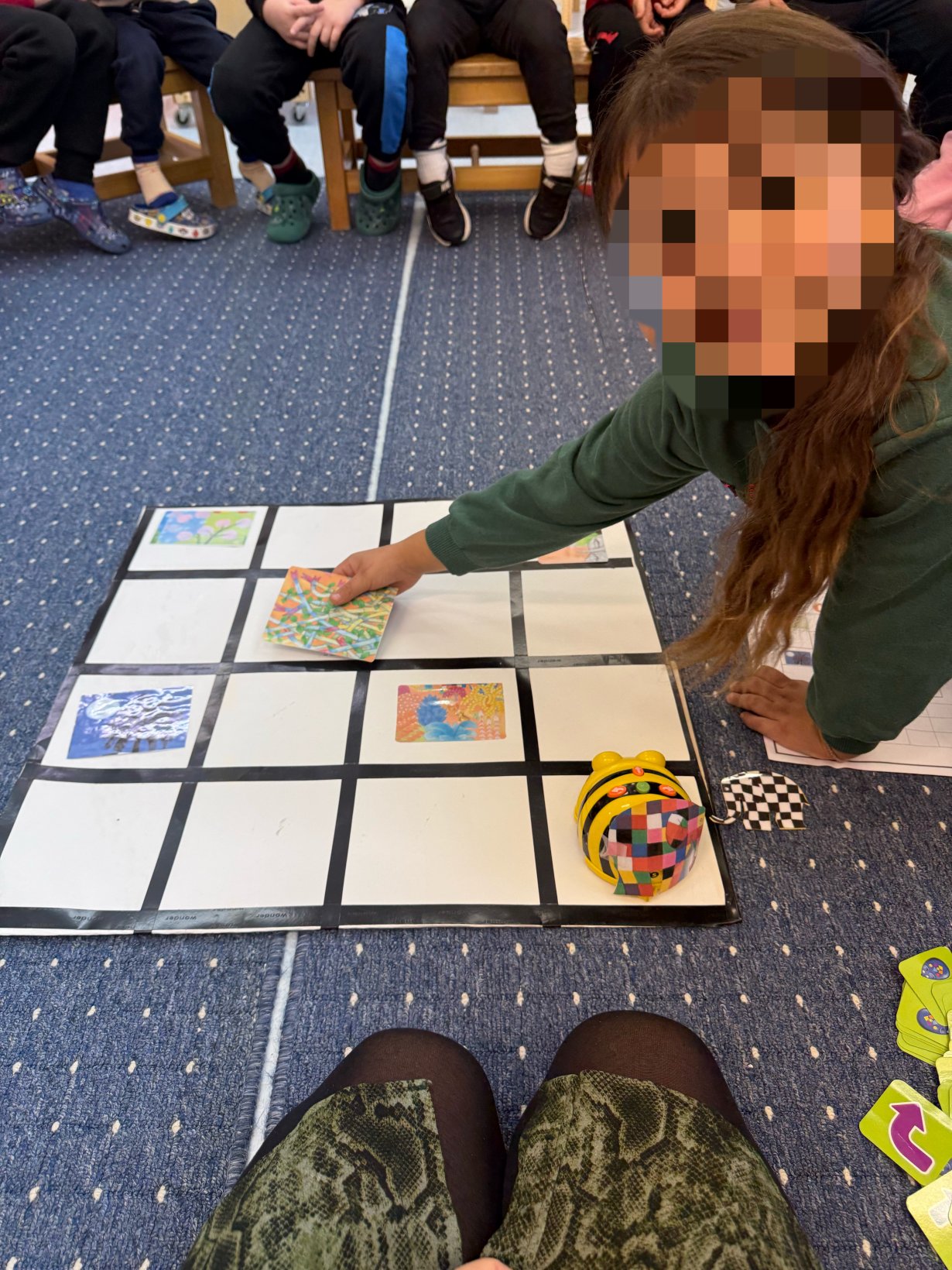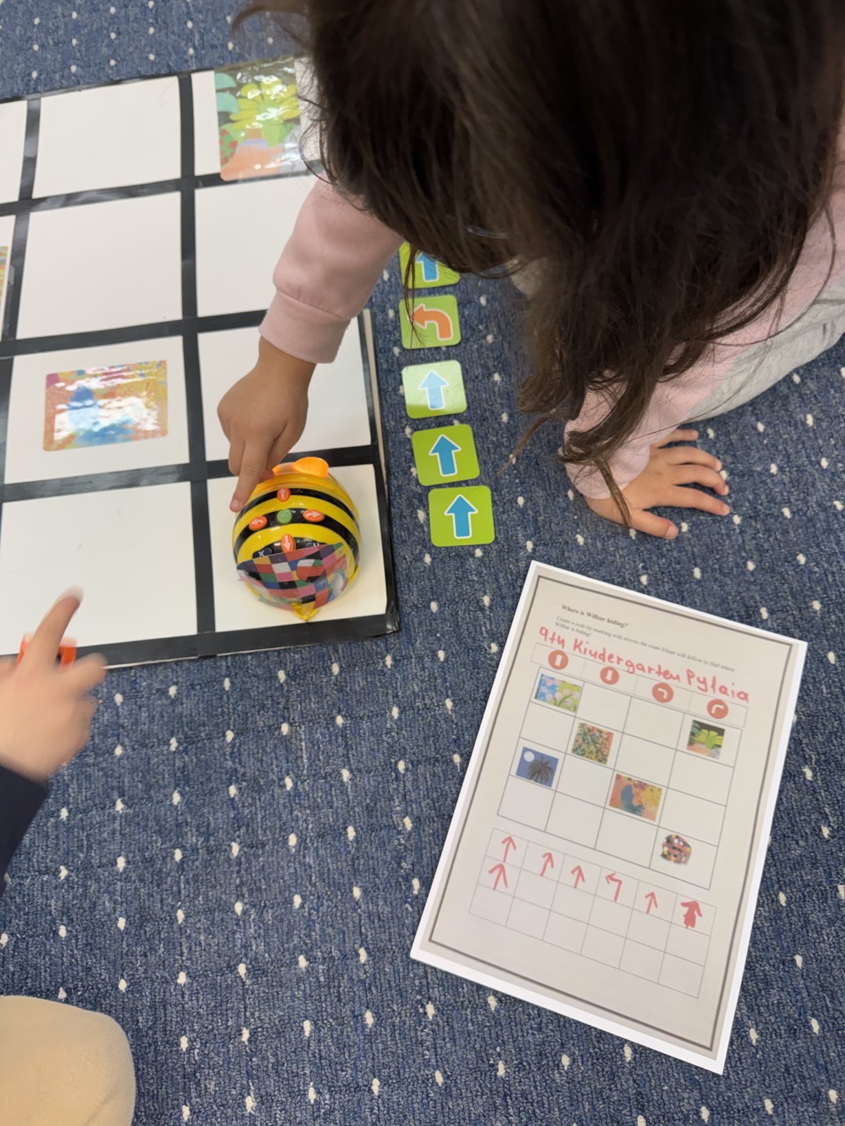 Εδώ οι μαθητές προσπαθούν να οδηγήσουν την μέλισσα και τον Έλμερ στον Wilbur, σύμφωνα με τον κώδικα που μας έστειλε το 9ο Νηπιαγωγείο Πυλαίας.