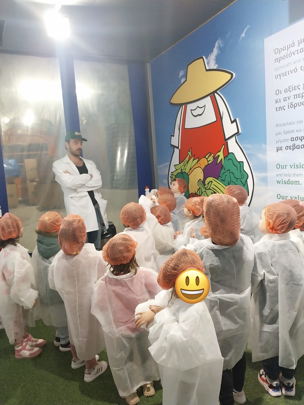 Κατά την άφιξη στη Σχολή Τυφλών Θεσσαλονίκης, τα παιδιά έτυχαν θερμής υποδοχής από τους υπεύθυνους του φορέα. Μέσα από την αξιοποίηση γαντόκουκλας, παρουσιάστηκε το έργο και η αποστολή της Σχολής με τρόπο προσαρμοσμένο στη γνωστική και συναισθηματική ηλικία των νηπίων. Τα παιδιά αλληλεπίδρασαν ενεργά, διατύπωσαν ερωτήσεις και μοιράστηκαν τις σκέψεις και τις εμπειρίες τους σχετικά με την όραση και την αναπηρία.