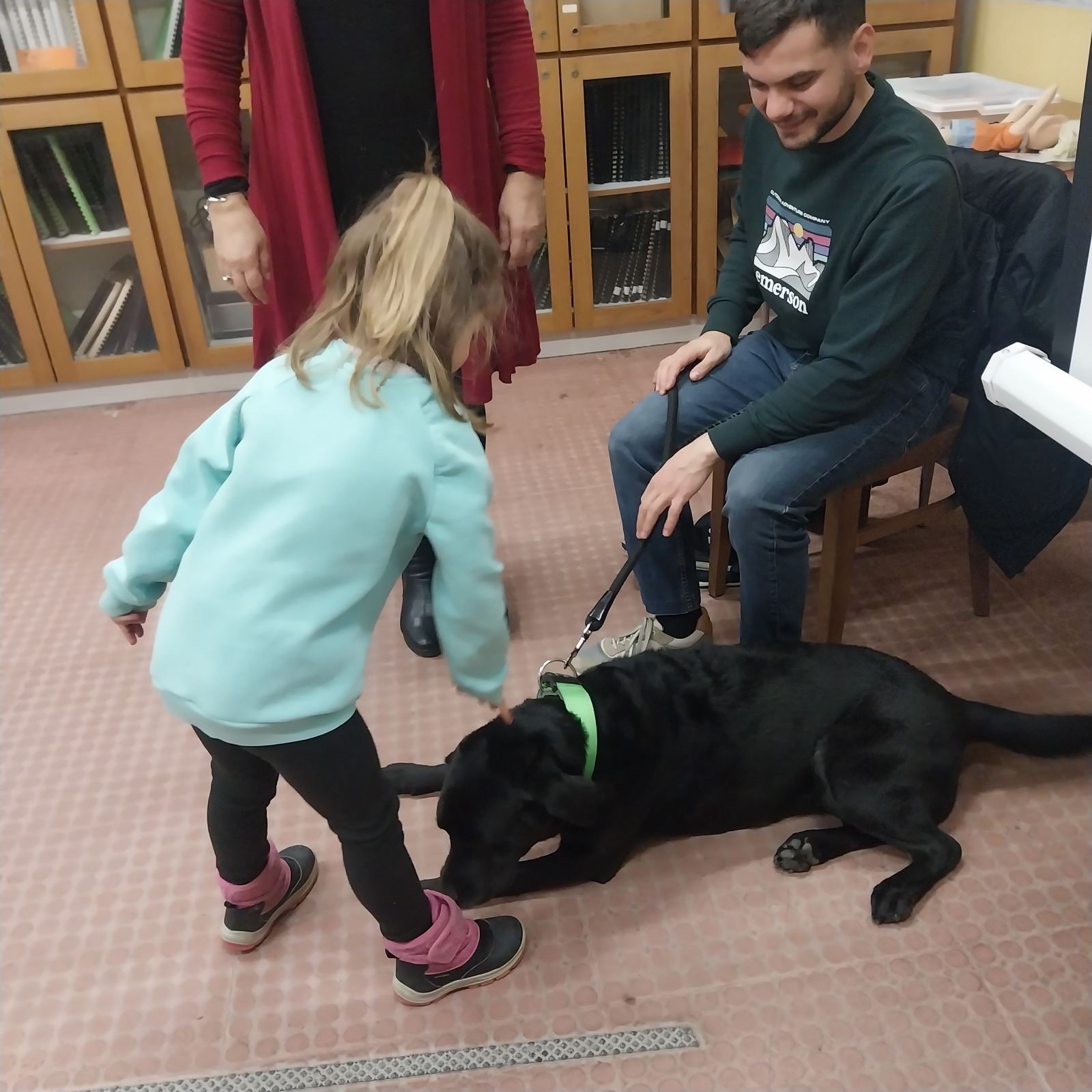 Ιδιαίτερα σημαντική στιγμή αποτέλεσε η παρουσίαση του σκύλου-οδηγού από μαθητή της Σχολής. Τα παιδιά ενημερώθηκαν για τον ρόλο, τα χαρακτηριστικά και τη συμβολή του σκύλου στην καθημερινή αυτονομία των ατόμων με οπτική αναπηρία, ενώ είχαν τη δυνατότητα να τον χαϊδέψουν, βιώνοντας μια εμπειρία άμεσης επαφής και συναισθηματικής σύνδεσης.