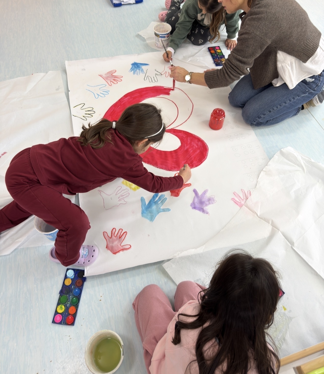 Πριν την πραγματοποίηση της επίσκεψης, τα νήπια συμμετείχαν σε οργανωμένες δραστηριότητες προετοιμασίας. Δημιούργησαν ομαδικά μια αφίσα, αποτυπώνοντας τις παλάμες τους ως σύμβολο αποδοχής και συμπερίληψης, ενώ με τη βοήθεια της/του εκπαιδευτικού έγραψαν σε κώδικα Braille το μήνυμα «Σας αγαπάμε». Η δραστηριότητα αυτή ενίσχυσε την ομαδικότητα, τη συνεργασία και τη συμβολική έκφραση συναισθημάτων.