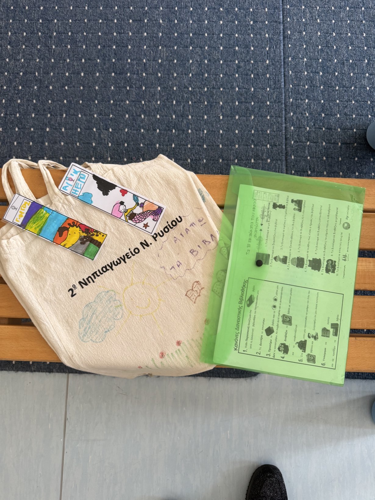 Η πρώτη επαφή των παιδιών με τη βιβλιοθήκη συνοδεύτηκε από συζήτηση σχετικά με τον ρόλο του βιβλίου και την αξία της ανάγνωσης. Μέσα από βιωματικές δραστηριότητες, τα παιδιά γνώρισαν τη διαδικασία επιλογής, δανεισμού και επιστροφής των βιβλίων. Παράλληλα, παρουσιάστηκαν οι «Χρυσοί Κανόνες» που θα διέπουν τη χρήση της βιβλιοθήκης, διατυπωμένοι με τρόπο κατανοητό τόσο για τα παιδιά όσο και για τους γονείς, ώστε να ενισχύεται η συνεργασία σχολείου–οικογένειας.