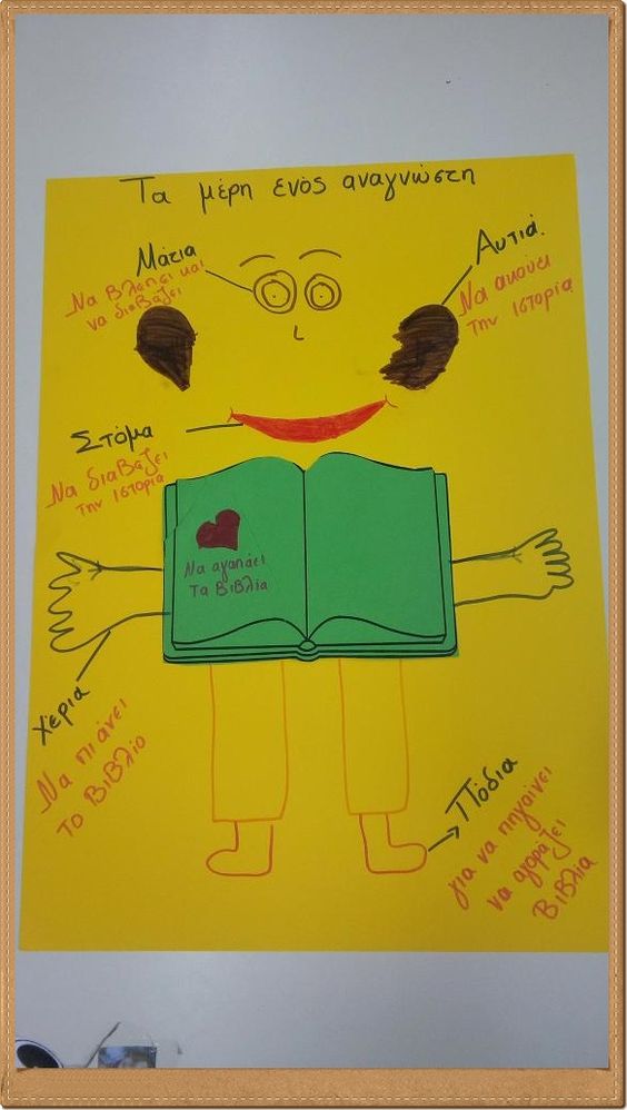 Καθόμαστε κάτω σε ημικύκλιο,κρατώντας από ένα βιβλίο. Η μαμά κάνει ότι διαβάζει και τα παιδιά τη μιμούνται. Με το δάχτυλο δείχνει που ακριβώς διαβάζει,προχωρώντας από αριστερά προς τα δεξιά και από πάνω προς τα κάτω. Ξεκινάει το διάβασμα από την αρχή του βιβλίου προς το τέλος. Γυρνάει τις σελίδες προσεχτικά ώστε να μη σκιστούν.