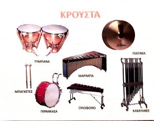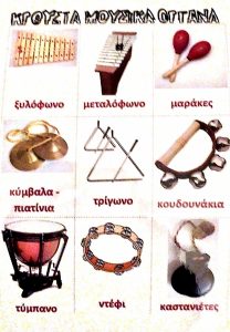 Δείχνουμε στα παιδιά κάποια μουσικά όργανα.Κάθε όργανο αντιστοιχεί σε μία κίνηση