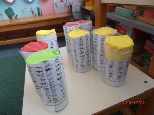 Παίρνουμε ένα κουτί ή ένα ρολό από χαρτί υγείας ή χαρτί κουζίνας.Την μια άκρη την κλείνουμε με ένα χαρτί και στερεώνουμε με ένα λαστιχάκι.Βάζουμε μέσα φακές ή φασόλια ή ρύζι …. κλείνουμε και την άλλη άκρη .Μπορούμε να το ζωγραφίσουμε …και το μουσικό μας όργανο είναι έτοιμο!!!!