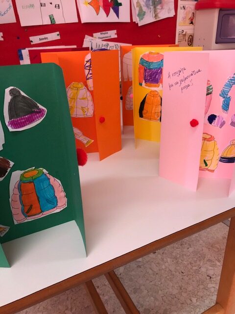 Διαβάσαμε το πολύ ωραίο παραμύθι “το μαγικό γάντι” και αφού τα παιδιά το δραματοποίησαν, έφτιαξαν τα πιο χρωματιστά χειμωνιάτικα γάντια.