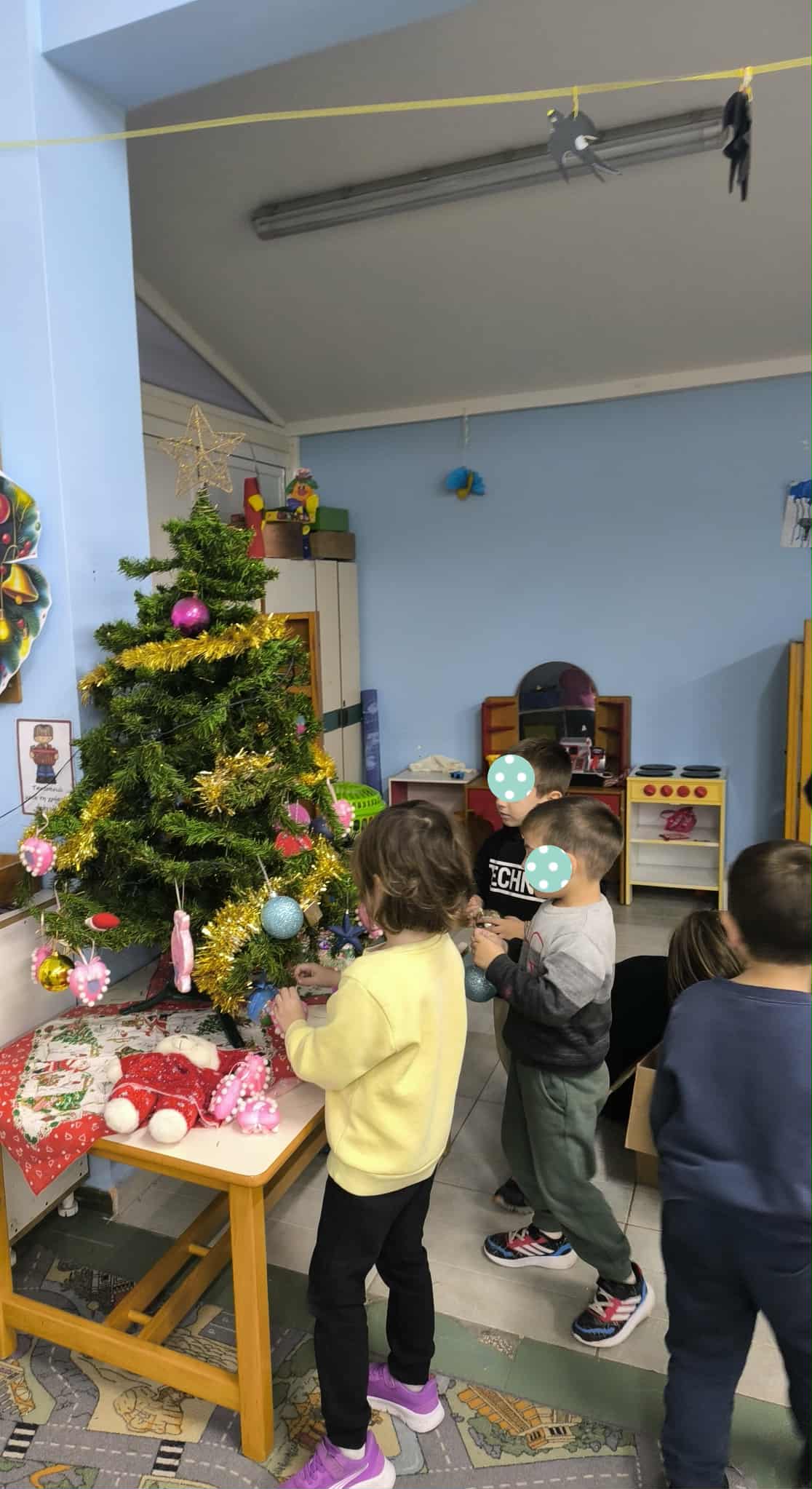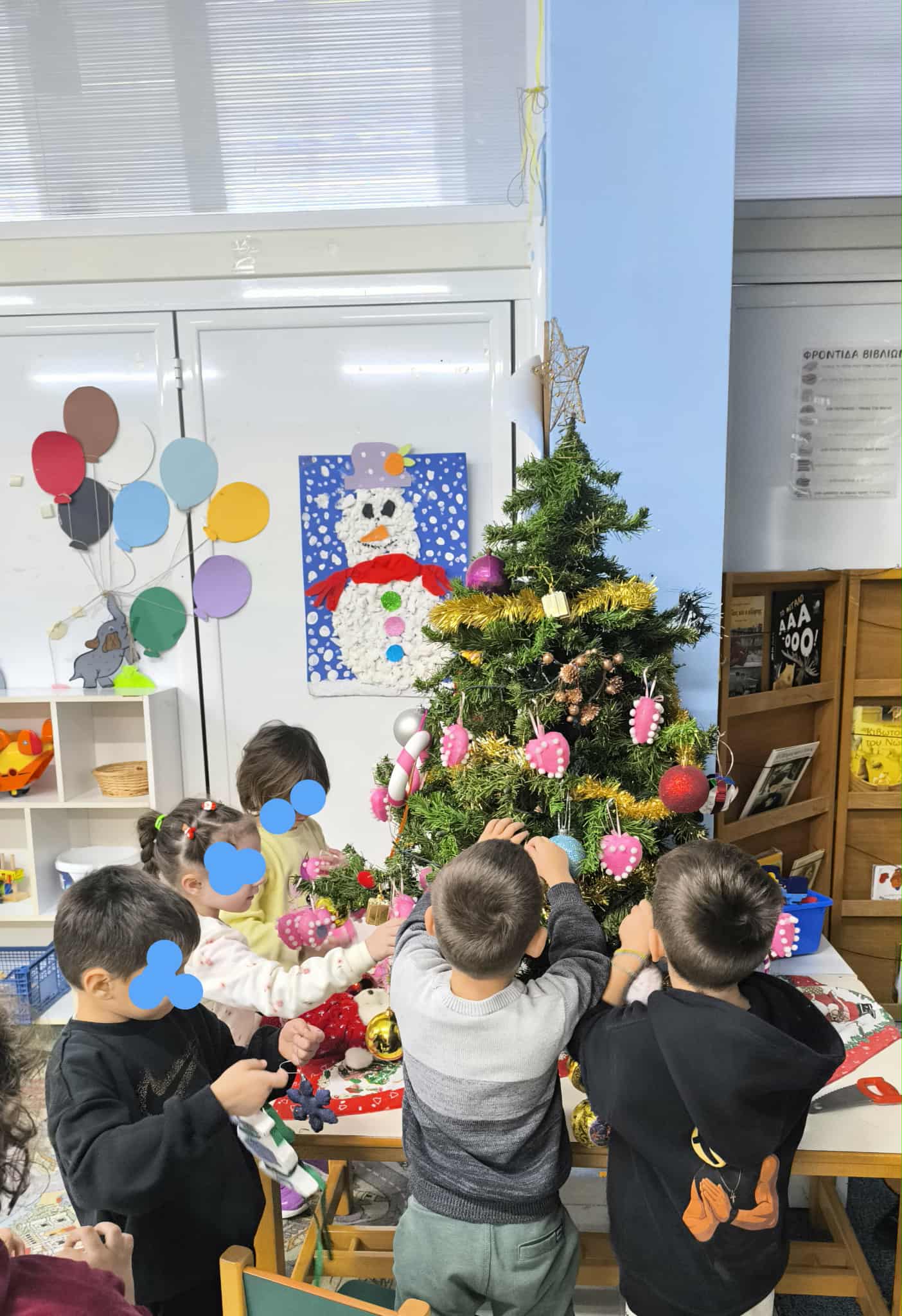 Η πιο αγαπημένη στιγμή των παιδιών ήταν αναμφίβολα το στόλισμα του χριστουγεννιάτικου δέντρου. Τα μικρά χεράκια κρέμασαν μπάλες, γιρλάντες, χειροποίητα στολίδια και φυσικά… πολλή αγάπη! Το αποτέλεσμα; Ένα καταπληκτικό λαμπερό δέντρο που γεμίζει τη γωνιά μας με ζεστασιά και χαρά.