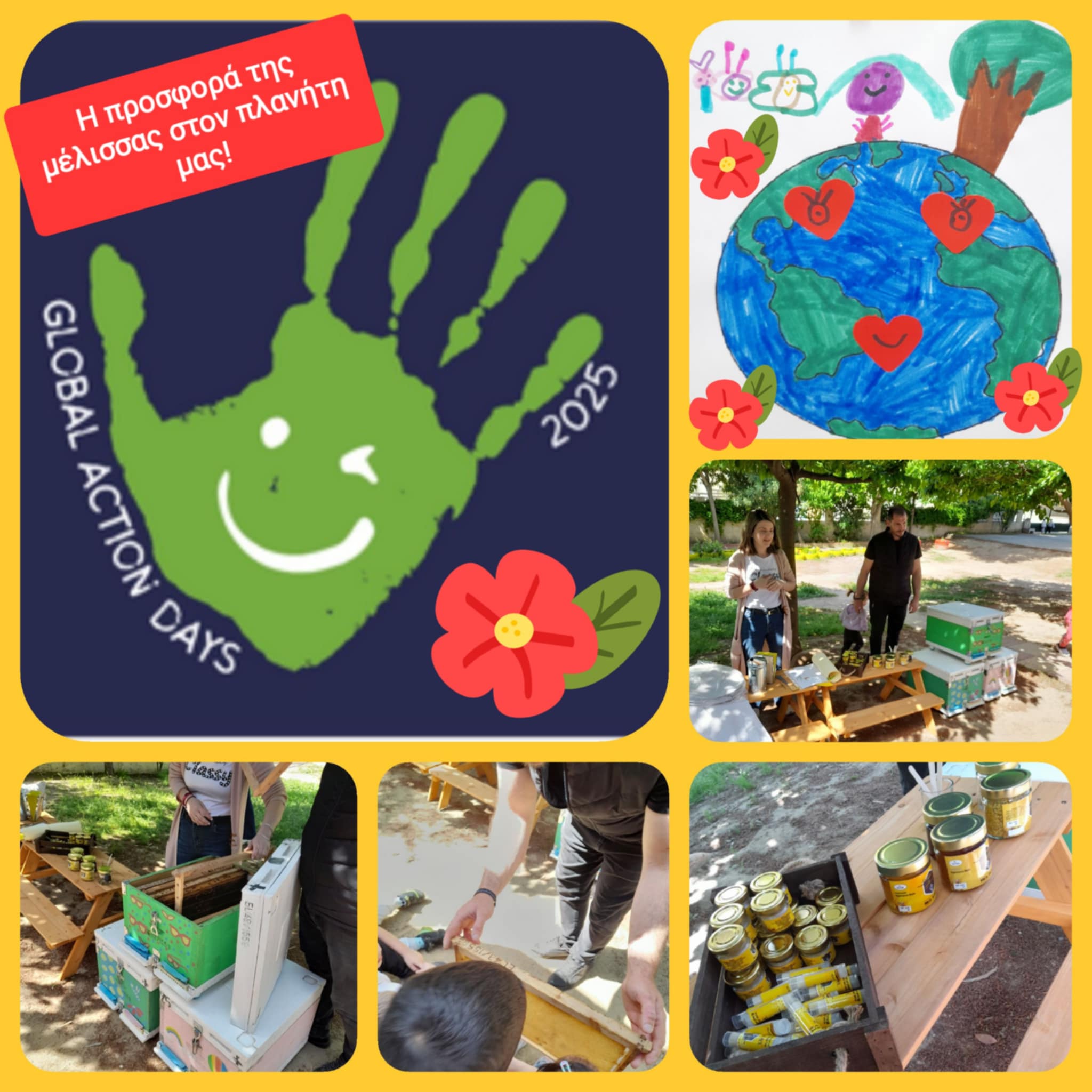 Συμμετέχουμε στις δράσεις Global Action Days 2025, εστιάζοντας στο ρόλο της μέλισσας ως έντομο εποικονιαστής για τη βιωσιμότητα του πλανήτη μας. Οι μαθητές μας είχαν την ευκαιρία να παρακολουθήσουν μια πολύ ενδιαφέρουσα παρουσίαση για την κοινωνία των μελισσών από γονείς μελισσοκόμους του σχολείου μας. Με πολύ χαρά και ενθουσιασμό οι μελισσοκόμοι κ. Κερμελιώτου Μαρία & Βασιλείου Νίκος επισκέφτηκαν τη σχολική μας μονάδα την Παρασκευή 2 Μαΐου με όλο τον εξοπλισμό τους. Μέσα από οργανωμένες βιωματικές δράσεις οι μαθητές μας παρατήρησαν τα σπιτάκια των μελισσών ,τις κερήθρες, τις μέλισσες ,φόρεσαν τη στολή του μελισσοκόμου, επεξεργάστηκαν το καπνιστήρι, γνώρισαν τα μελισσοκομικά προϊόντα (μέλι, γύρη, κερί πρόπολη) και κατανόησαν τη σημασία της μέλισσας για τη διατήρηση της ζωής στον πλανήτη μας.