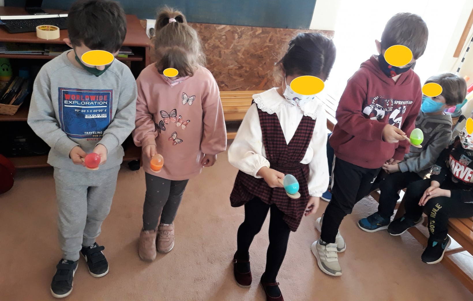 Έπαιξαν το “παιχνίδι του κρυμμένου πασχαλινού αβγού” . Τα παιδιά σε ομάδες, προσπαθούσαν μέσα στην τάξη να ανακαλύψουν τα κρυμμένα πασχαλινά αβγά.