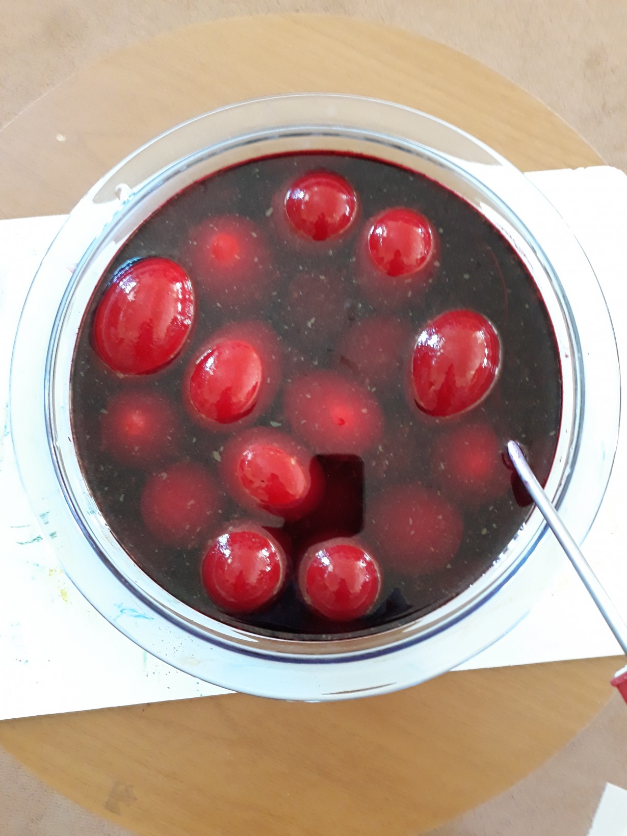 Ζωγράφισαν πασχαλινά αβγά με πινέλα.