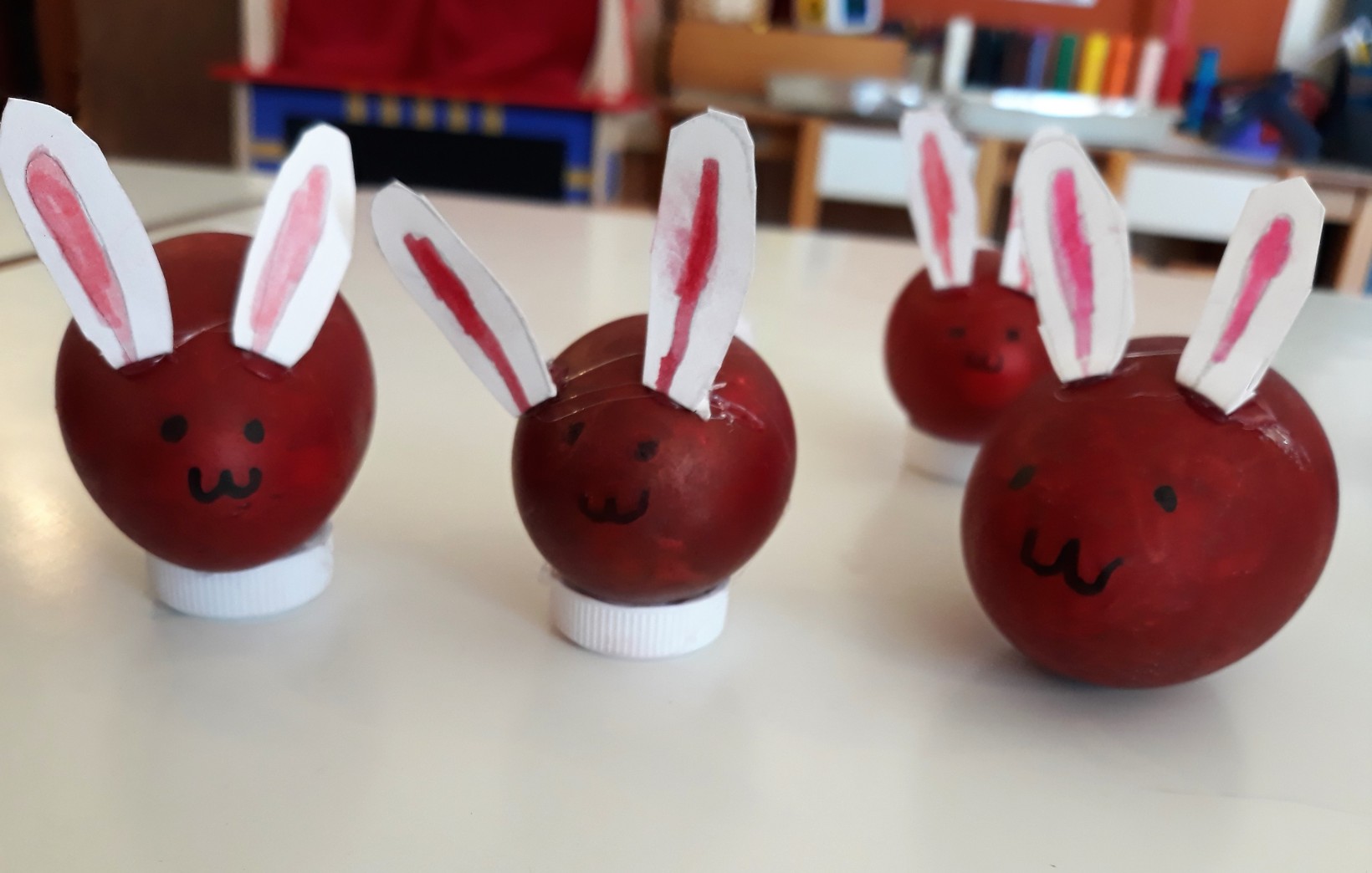 Έβαψαν πασχαλινά αβγά και τα μεταμόρφωσαν σε λαγουδάκια.