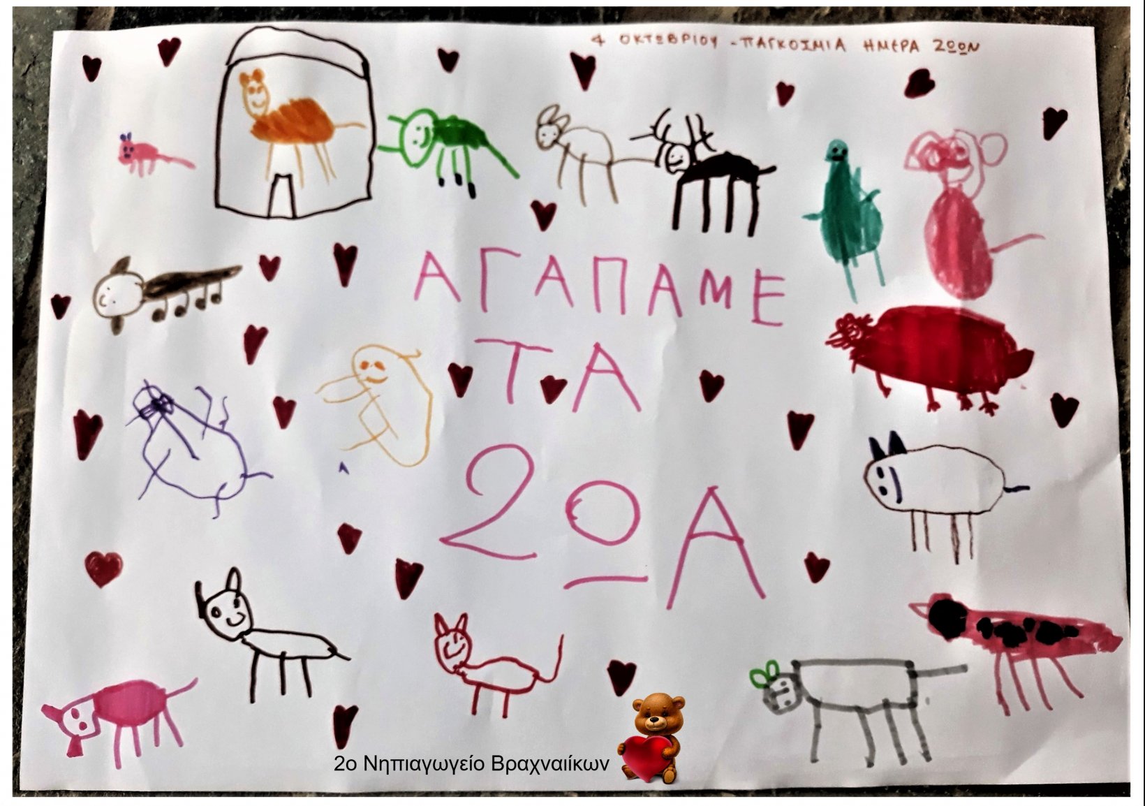 Έφτιαξαν τη δική τους αφίσα ζωγραφίζοντας πάνω το αγαπημένο τους ζωάκι και στέλνοντας ένα μύνημα σε όλους «ΑΓΑΠΑΜΕ ΤΑ ΖΩΑ» .