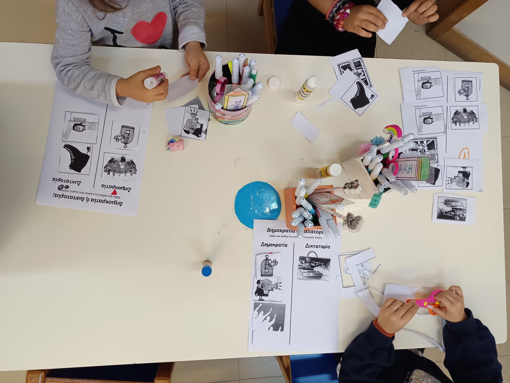 Τέλος δεν θα μπορούσε να λείπει η τέχνη από το φθινόπωρο. Αφού είδαμε διάφορους πίνακες σπουδαίων καλλιτεχνών φτιάξαμε τα δικά μας έργα τέχνη με αφορμή τον πίνακα του Βασίλι Καντίνσκι (ενός από τους σημαντικότερους καλλιτέχνες του 20ου αιώνα) “Μελέτη στο χρώμα: Τετράγωνα με ομόκεντρους δακτυλίους” και δημιουργήσαμε τα δικά μας φθινοπωρινά δέντρα με την ίδια τεχνική.