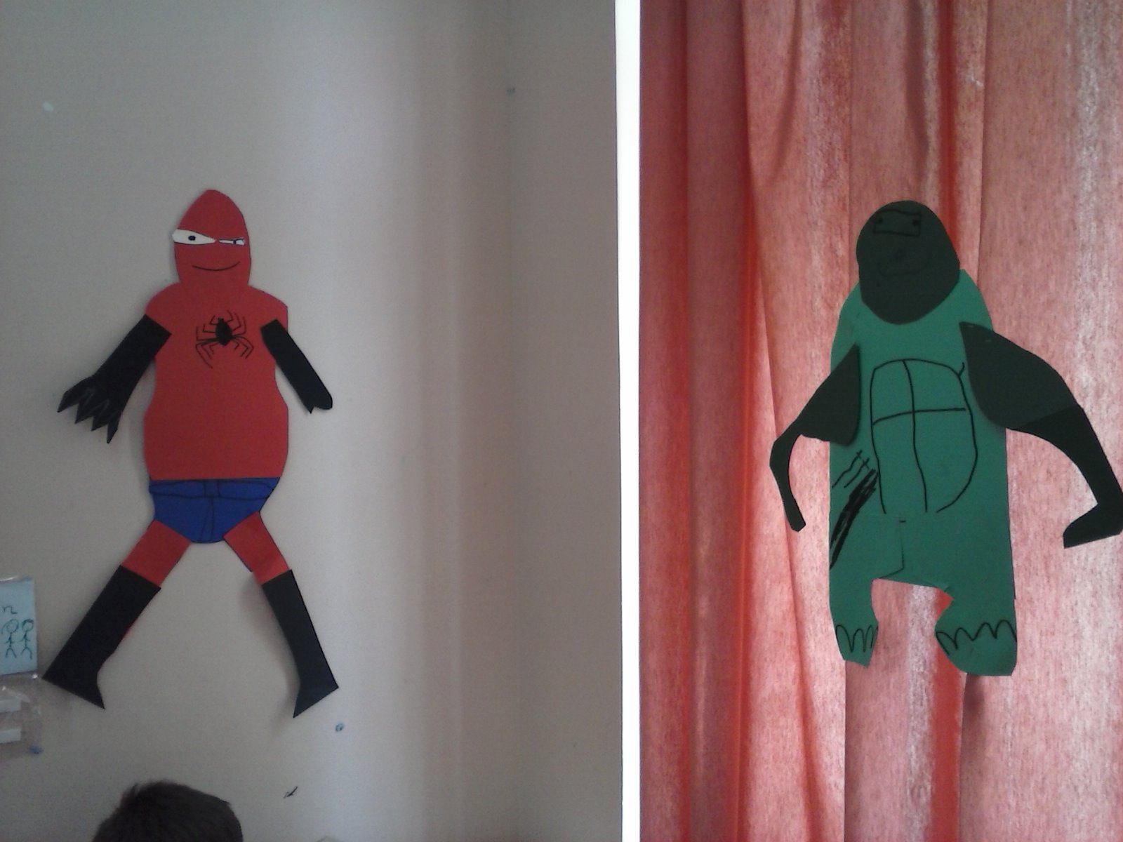 Γι αυτό πήραμε αφορμή να μιλήσουμε και να μάθουμε οπως μας είπαν τα παιδιά απο την διερεύνηση,πώς εχουν τέτοιες δυνάμεις, ποιά είναι η χώρα τους…Φυσικά το νηπιαγωγείο κατακλείστηκε απο αξεσουάρ ,βιβλία ,CD κι ότι άλλο μπορείς να φανταστείς. Όλοι οι τηλε -ήρωες ήταν εκεί.Η περιπλάνηση μας ξεκίνησε,με γνωριμία και καταγραφή ονομάτων σε αφίσα