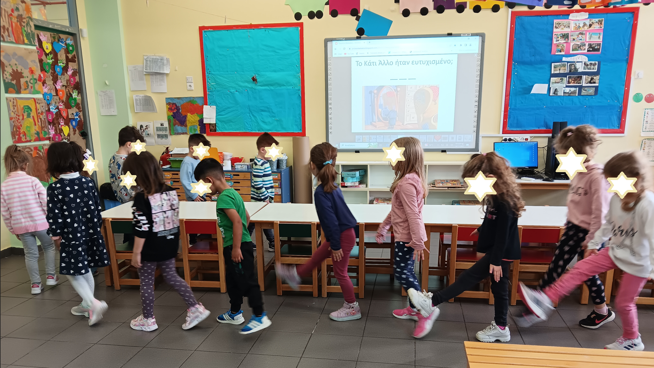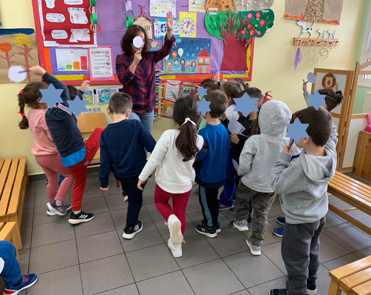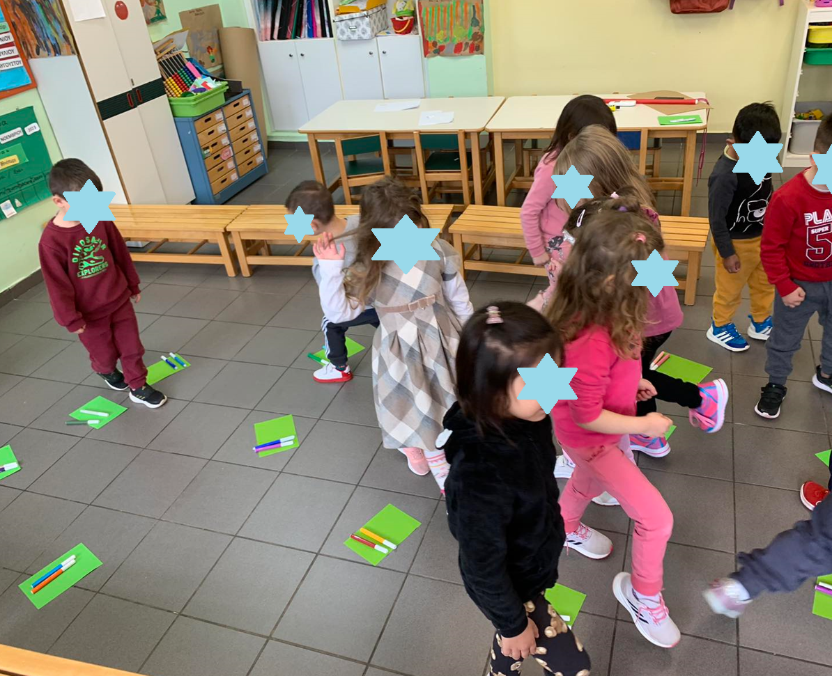 - Κινητική δραστηριότητα με κατευθυνόμενους και ελεύθερους αυτοσχεδιασμούς – τεχνικές θεάτρου