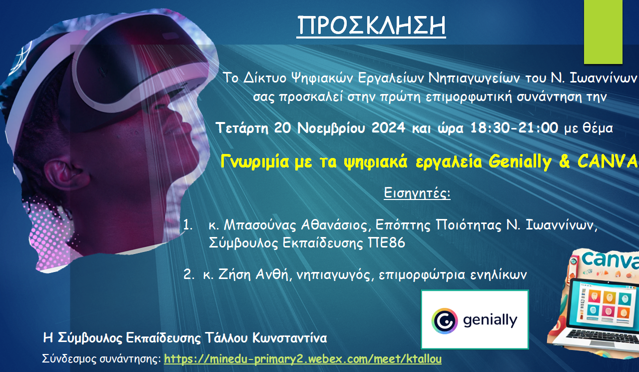 1η Ενδοσχολική Επιμόρφωση Δικτύου Ψηφιακών Εργαλείων Νηπιαγωγείων Ν. Ιωαννίνων